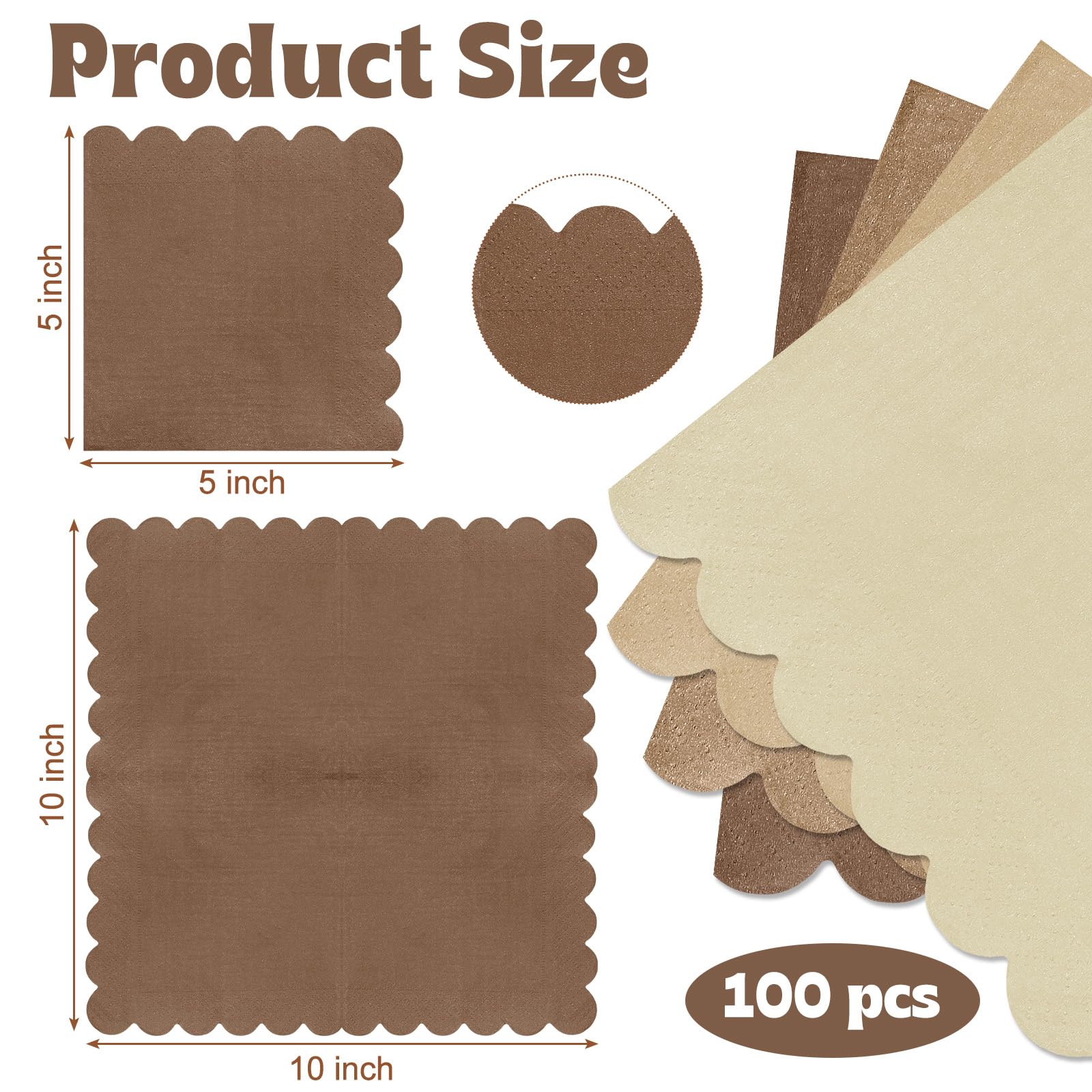 Features: Delightful gift choice: Our pack of scalloped dinner napkins makes a thoughtful gift to present to your loved ones, friends, family, neighbors, kids, and colleagues. They are a delightful pick for housewarming parties, weddings, anniversaries, birthdays, festivals, or other cherished occasions. Let them unwrap quality combined with an exceptional aesthetic. Dessert napkins: Designed not only for cocktails and drinks, but these bridal shower napkins can also be employed during indulgent sweet treats. They provide an effective cleaning solution for those inevitable sticky dessert situations and are suitable for both indoor and outdoor parties. Made of quality paper material, they effortlessly absorb any spills, ensuring clean and hygienic dining. Specifications: Material: paper Color: gradient coffee Size: Folded: 12.5 x 12.5 cm/ 5 x 5 inches Unfolded: 25 x 25 cm/10 x 10 inches Package includes: 100 x Cocktail napkins Notes: Manual measurement, please allow slight errors on size. The color may exist a slight difference due to different screen displays.