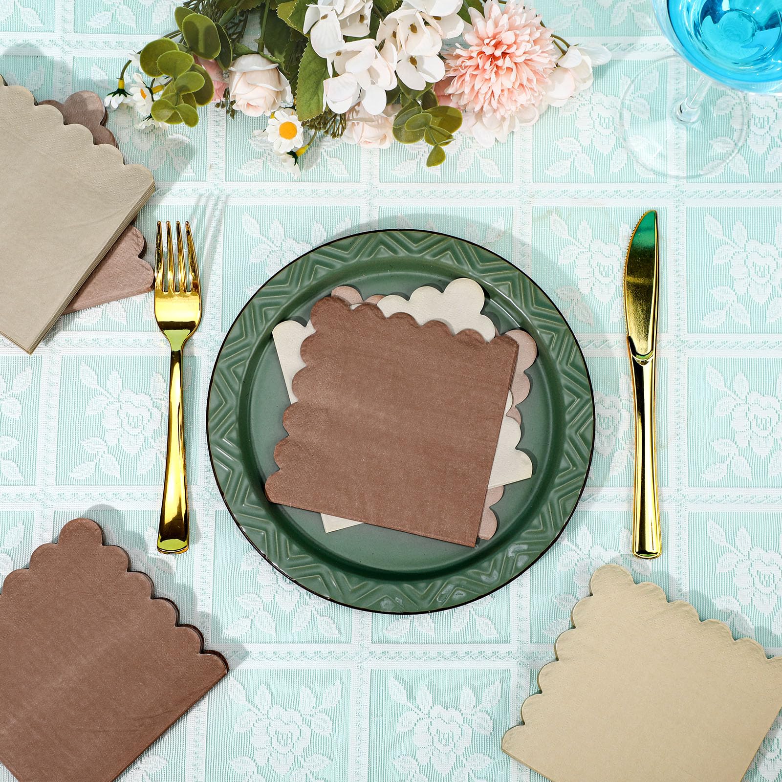 Exceptional Aesthetic Contribution: crafted with a captivating coffee gradient coloration, these scalloped napkins, from light to dark, are not your average table accessory; Their stylish scalloped edges amplify the sophistication factor, making them a complementary addition to various celebratory events such as weddings, birthdays, graduations, and ceremonies