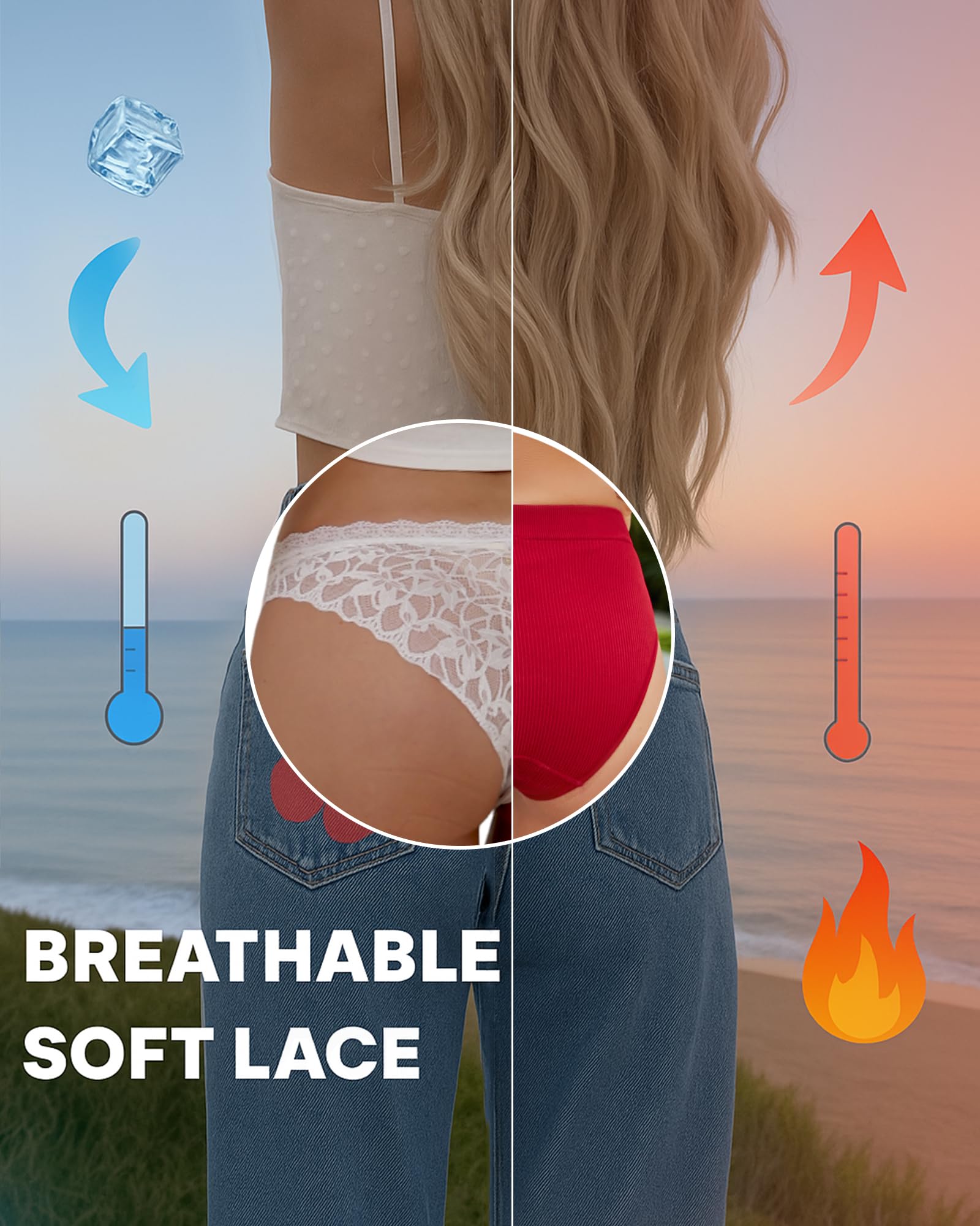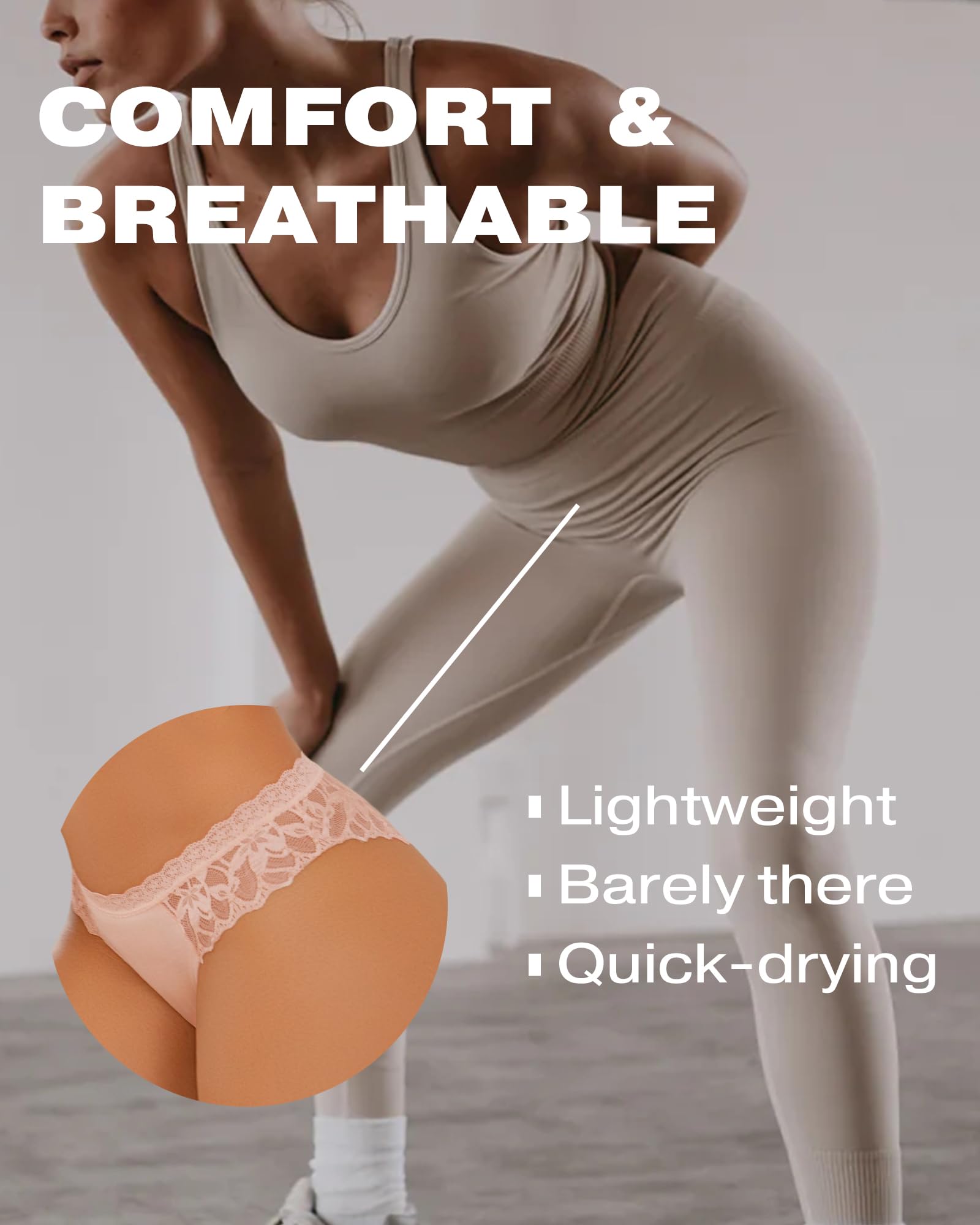 Lace underwear: Experience barely-there ease with ultra-breathable lace panels covering sides and back, create maximum airflow and rapid drying, moisture evaporates 2x faster than regular underwear for women, keeping you cool during workouts, focused at work, or relaxed in sleep. The featherlight design transitions seamlessly between activities.