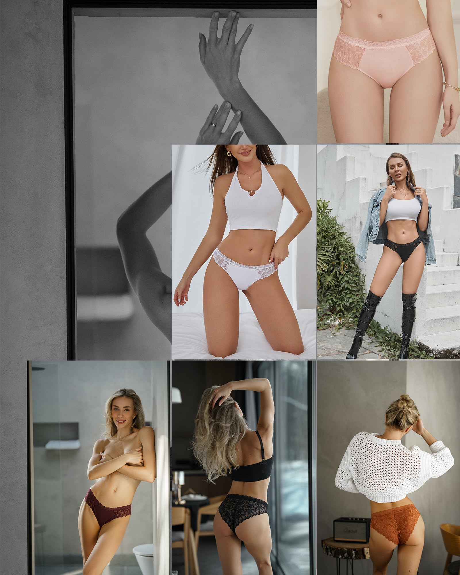 Cotton underwear: Crafted with a body-friendly cotton blend (95% cotton + 5% spandex) for the front and lining, offering softness and stretch where you need it most. The delicate lace panels (72% polyamide + 18% elastane + 10% polyester) along the sides, waist, and back provide a silky-smooth feel, ensuring flexibility and a flattering fit that moves with you effortlessly.