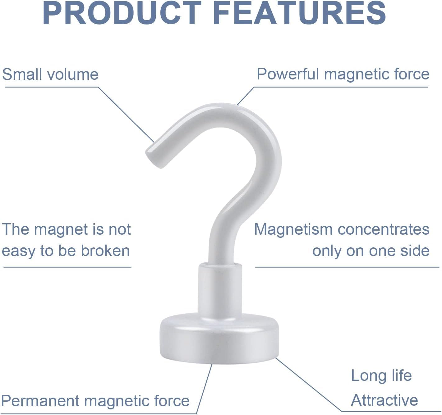 【Versatile Use】 Rare earth neodymium magnet hooks are ideal for hanging various household articles, office material etc, great for organization. They are also widely used in cruise, fridge, kitchen, locker, workplace office, garage, indoor, outdoor and anywhere there is iron or steel. No drilling holes, No sticky residue, No bolt or screws; Easy to install or remove and reusable.