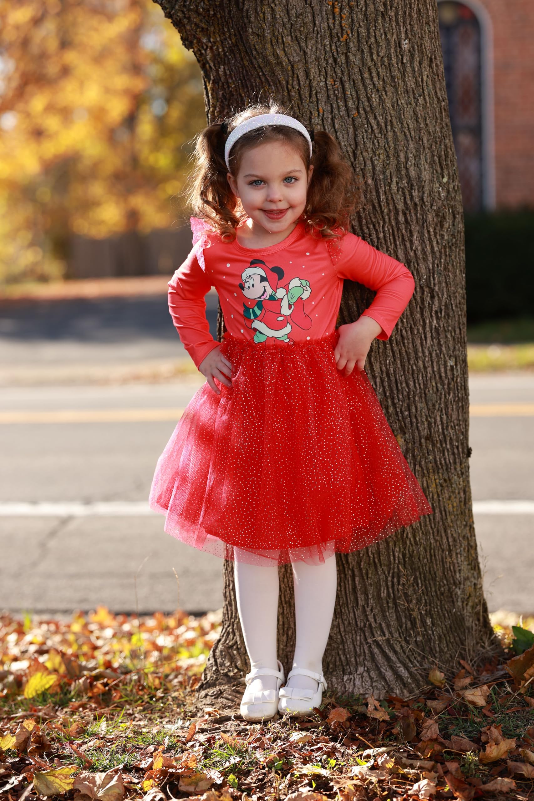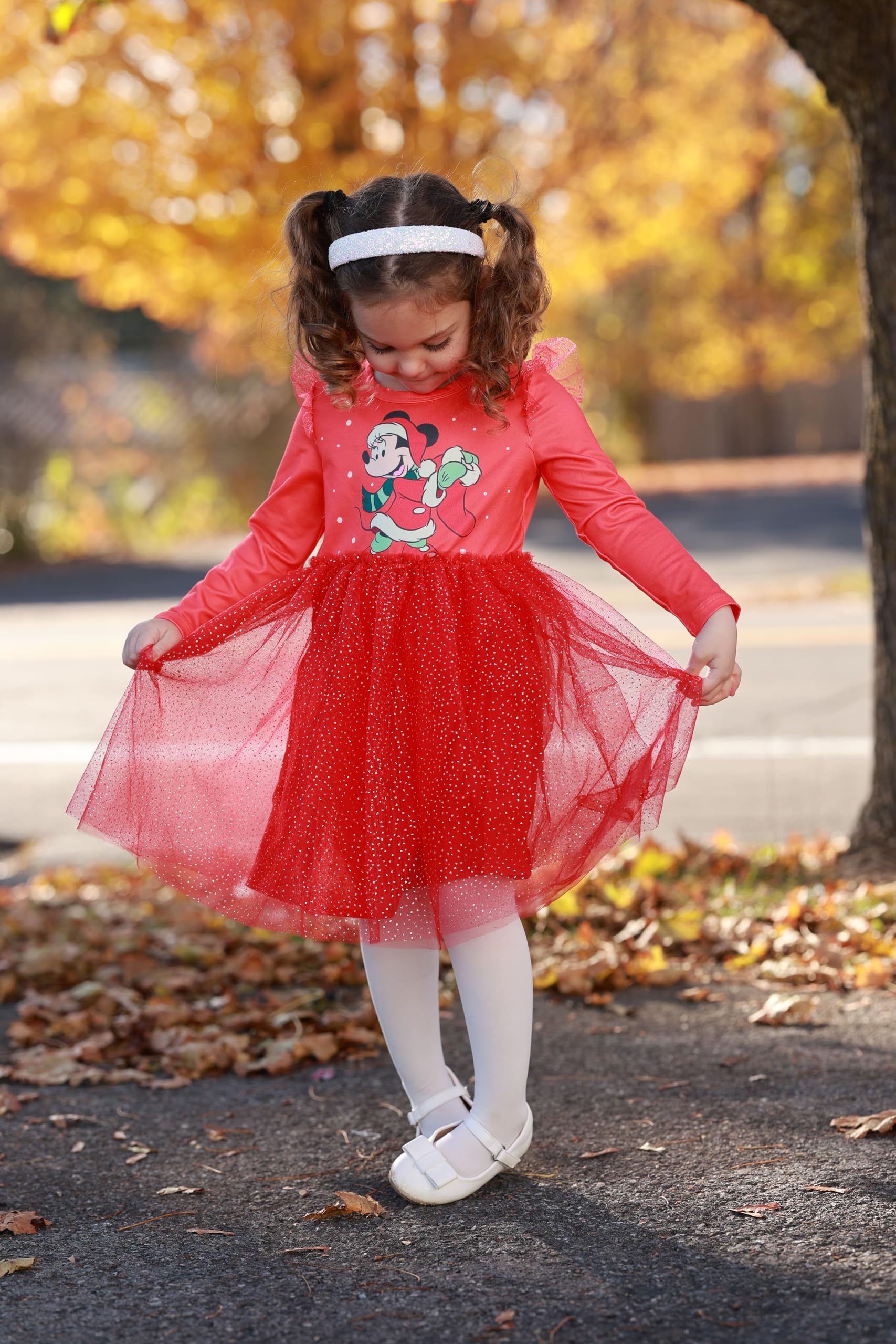 Charming & Unique Design: This girls' Christmas dress features ruffled sleeves, a tulle skirt with sparkles, and Minnie Mouse in a joyful holiday pose. The vibrant red color and fluttering tulle skirt make it the perfect choice for Christmas parties, photoshoots, or dress-up occasions. Your toddler will look stylish and cute for any festive event.
