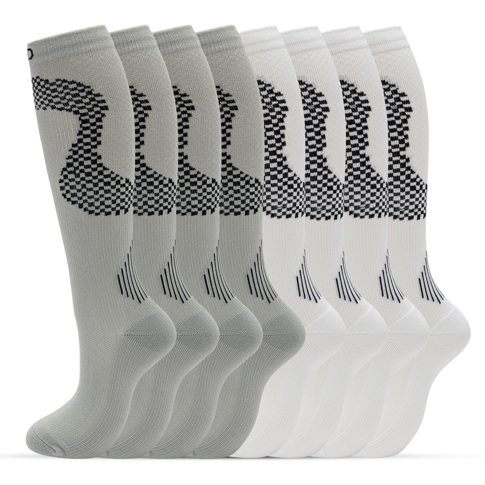 Compression socks for men and women promote blood circulation by applying a certain amount of pressure to the legs. It reduces pain and swelling when you stand or run for long periods of time.