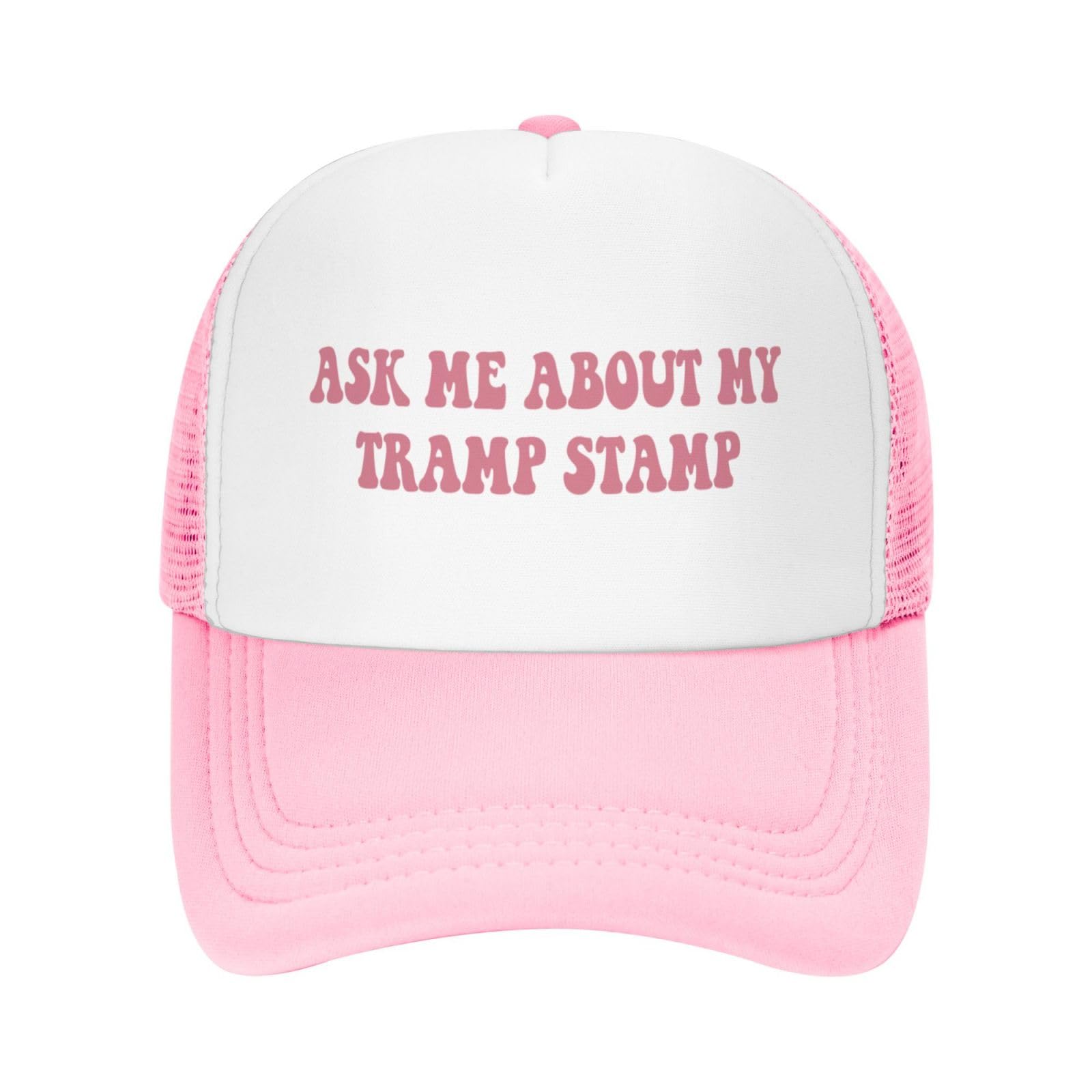Women Trucker Hats Funny Ask Me About My Tramp Stamp Go With Your Most Clothes: The Team Hat Is Easy To Match With Casual Everyday Clothes. Such As Shirts. Sweatshirts. Shorts. Jeans. Vests. Jackets. And Other Clothing. Bringing You A Happy Mood In Most Days