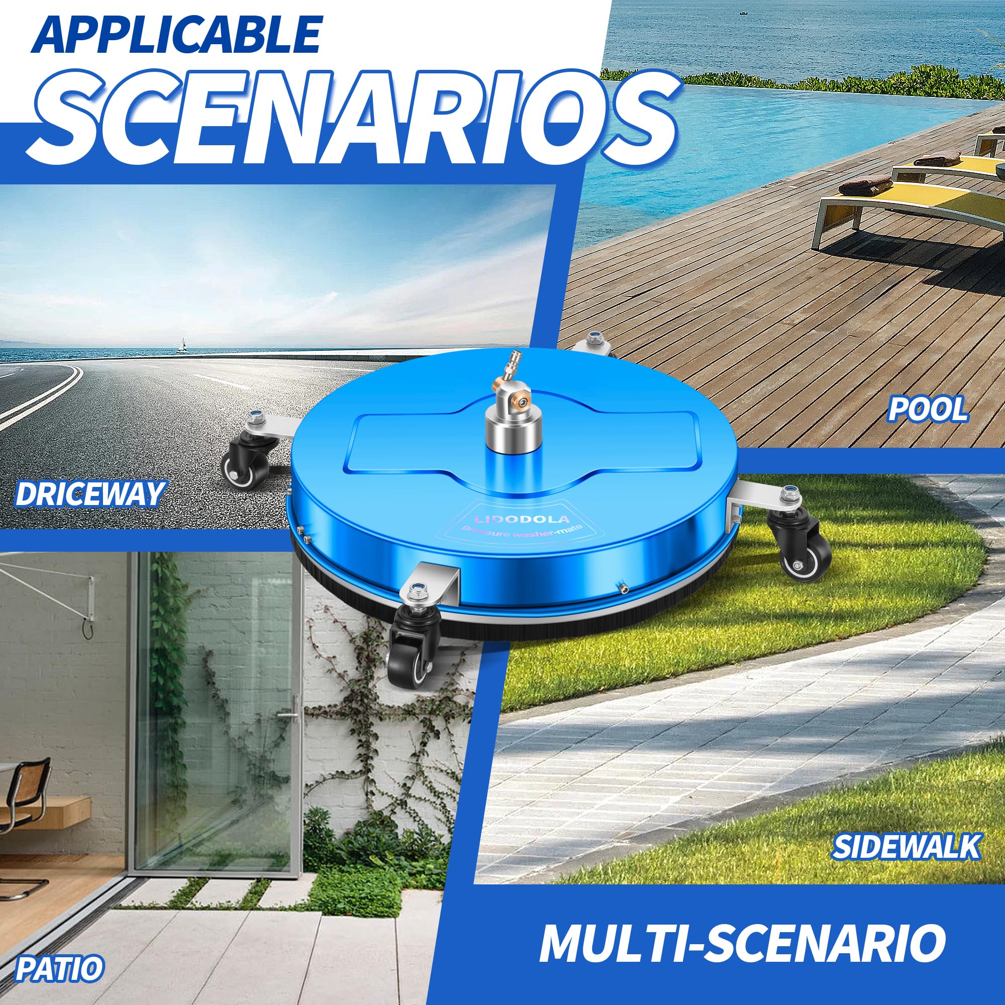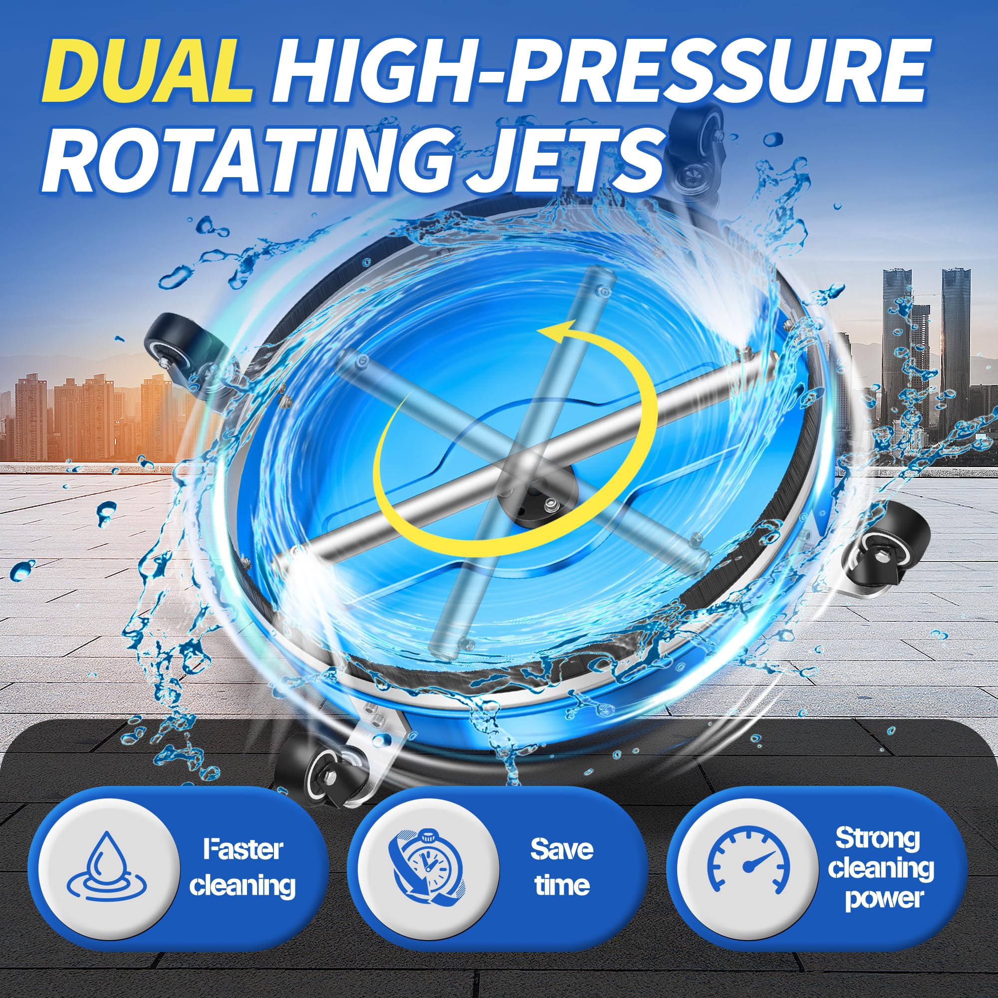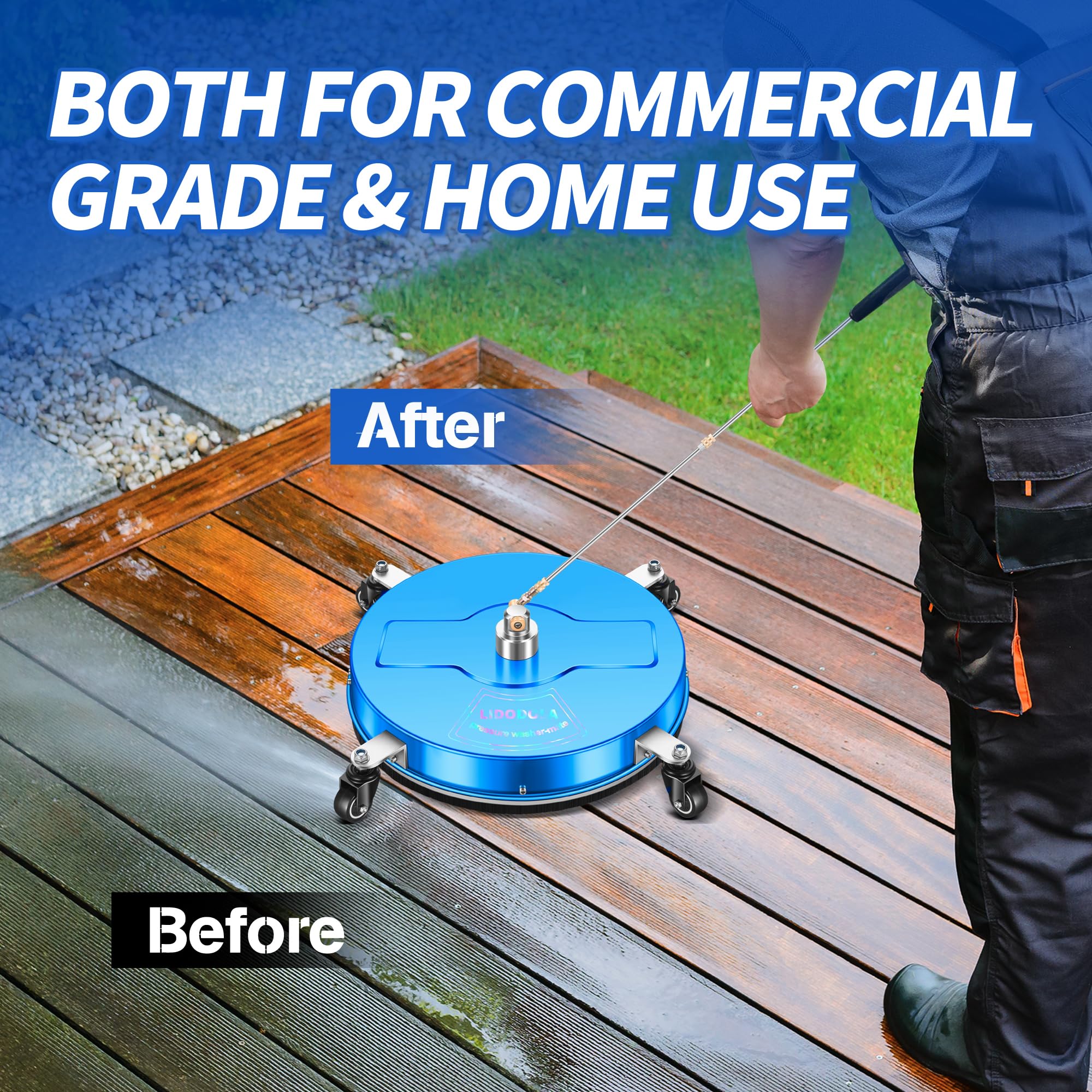 PROFESSIONAL CLEANING – The Lidodola surface cleaner achieves high-performance cleaning across a 19" wide area with dual spinning nozzles, delivering thorough removal of stubborn stains on driveways, decks, sidewalks, and other large surfaces.
