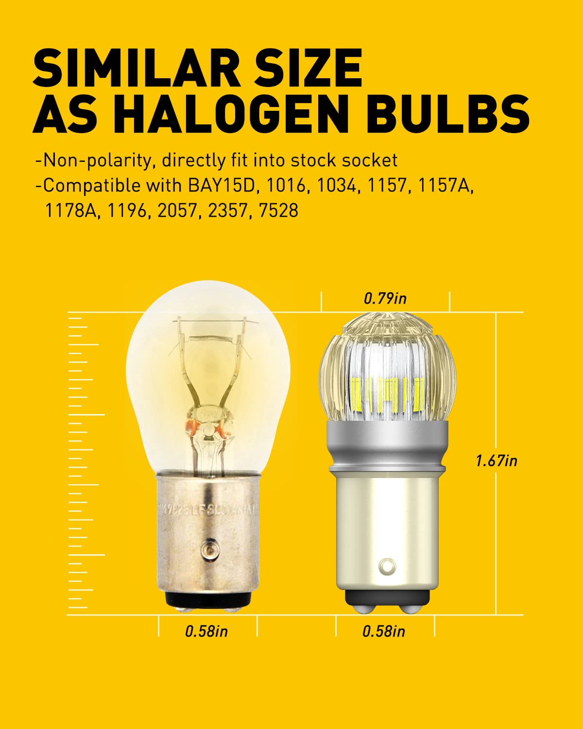 【Directly Fit & Multi Application】 Non-polarity, auxito 1157 led BULBS are plug and play for stock backup reverse lights, brake lights, turn signal lights, etc. Compatible with socket BAY15D 1016 1034 1157 1157 1178 1196 2057 2357 2357NA 2397 3496 7528 94, etc.