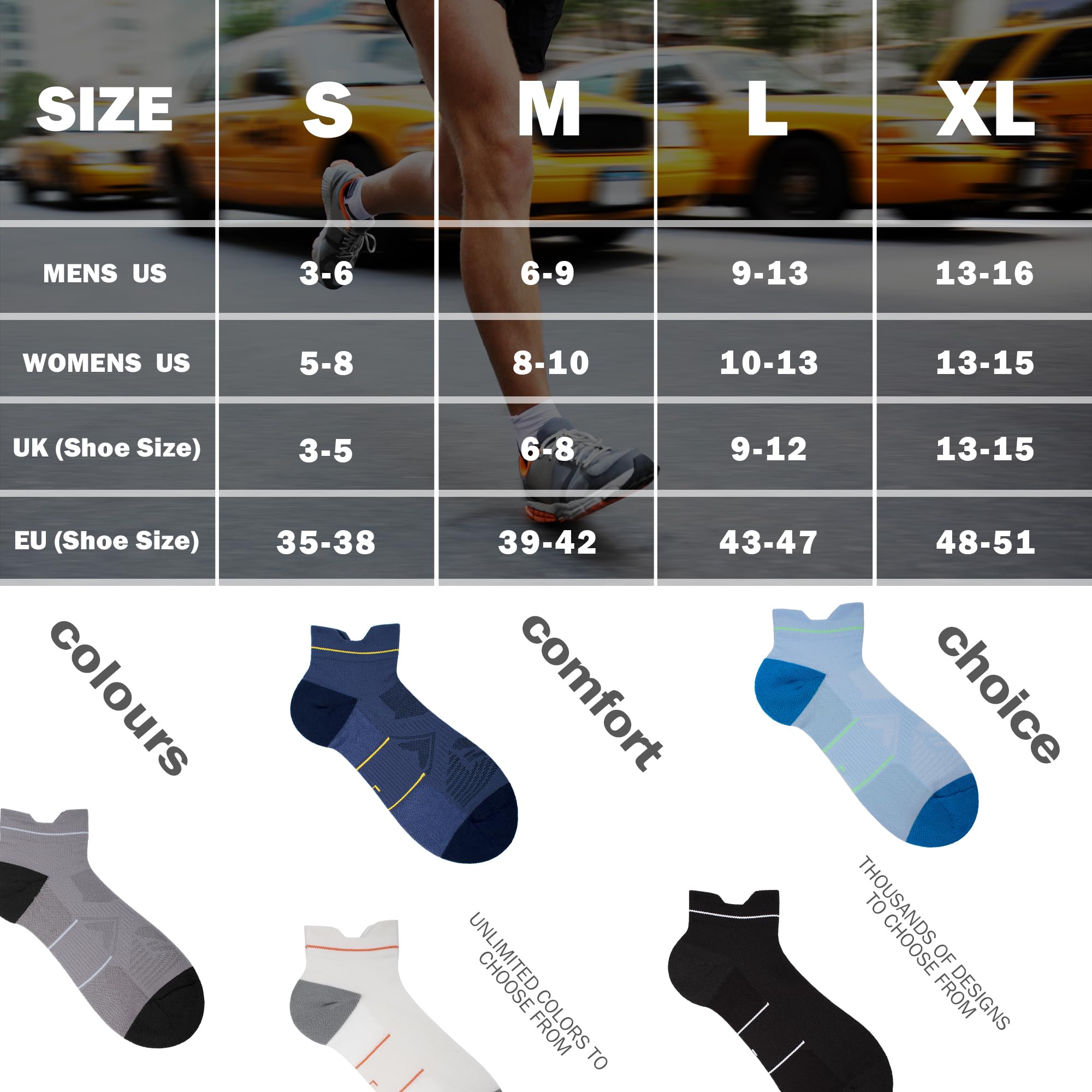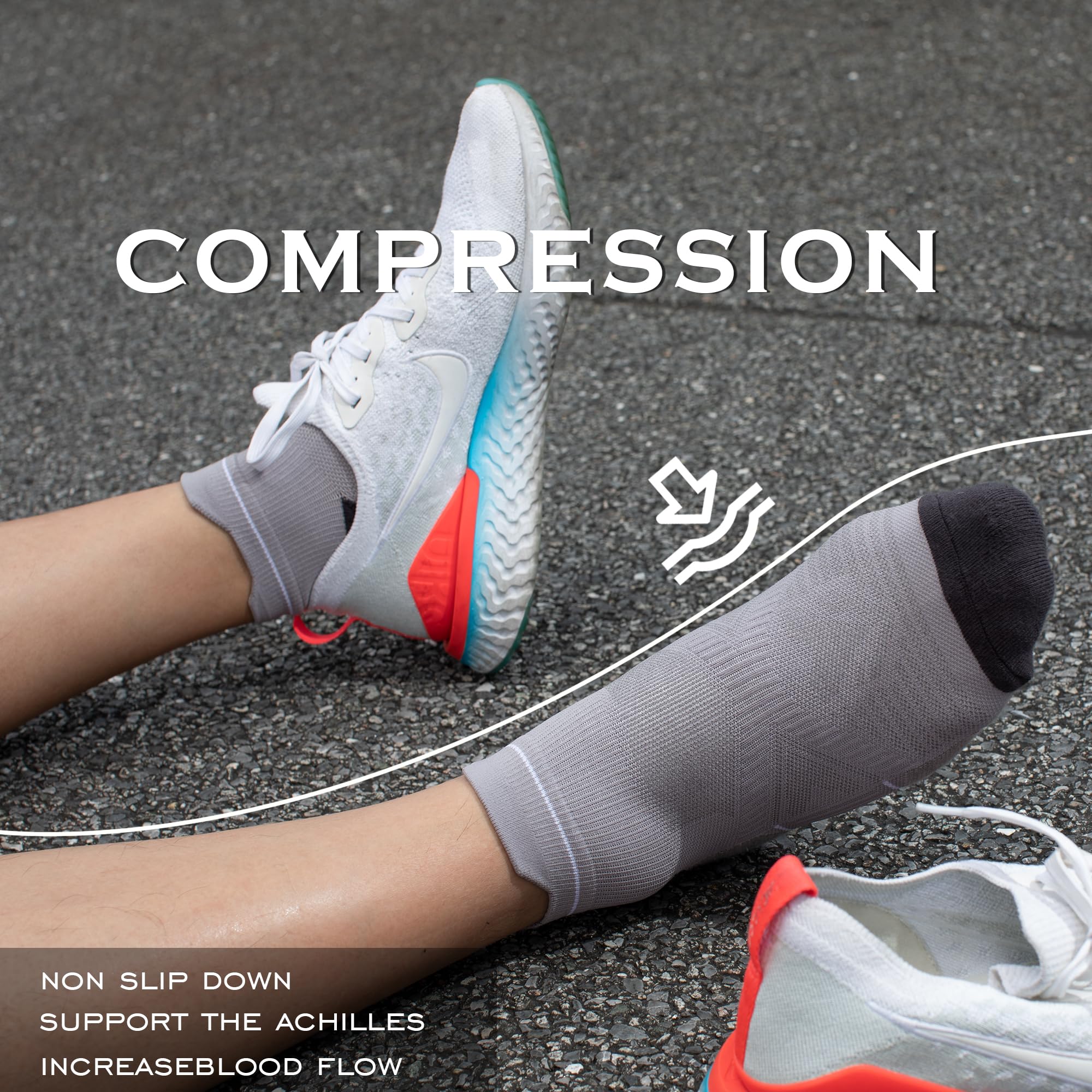 [Compression Design & Arch Support System]These Running socks men are designed with compression. Just the right amount of compression and an arch support system ensures supportive stability for the arches during intense exercise, whilst maintaining ankle flexibility.Proper compression band designed in arch fits the individual shape of your foot, hugs your foot evenly to keep the sock in position in your shoe.