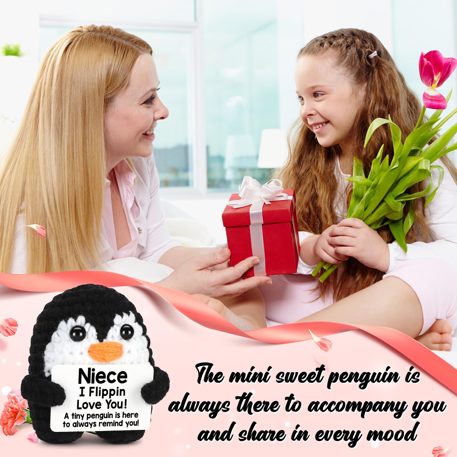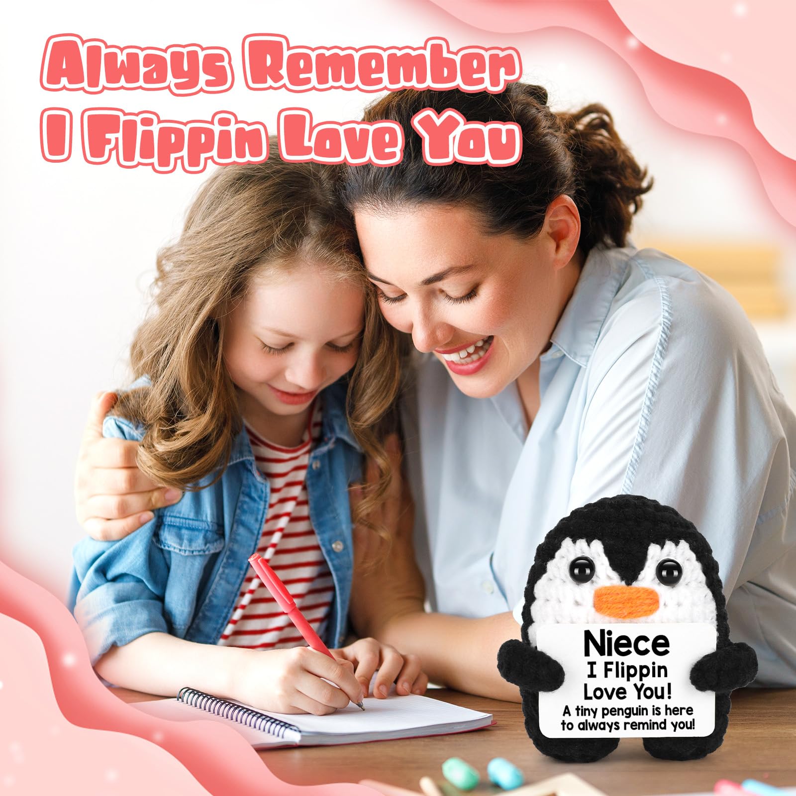 High-Quality Handmade Penguin: These crochet penguins, measuring around 2.9 x 2.9 x 2 inches, are compact and conveniently fit into pockets or backpacks. Crafted from high - quality yarn and cotton, this crochet positive penguin is soft to the touch, rebounds quickly, and is resistant to deformation.Just like you are constantly present and offer support in your niece's life, every detail is attended to with love and care