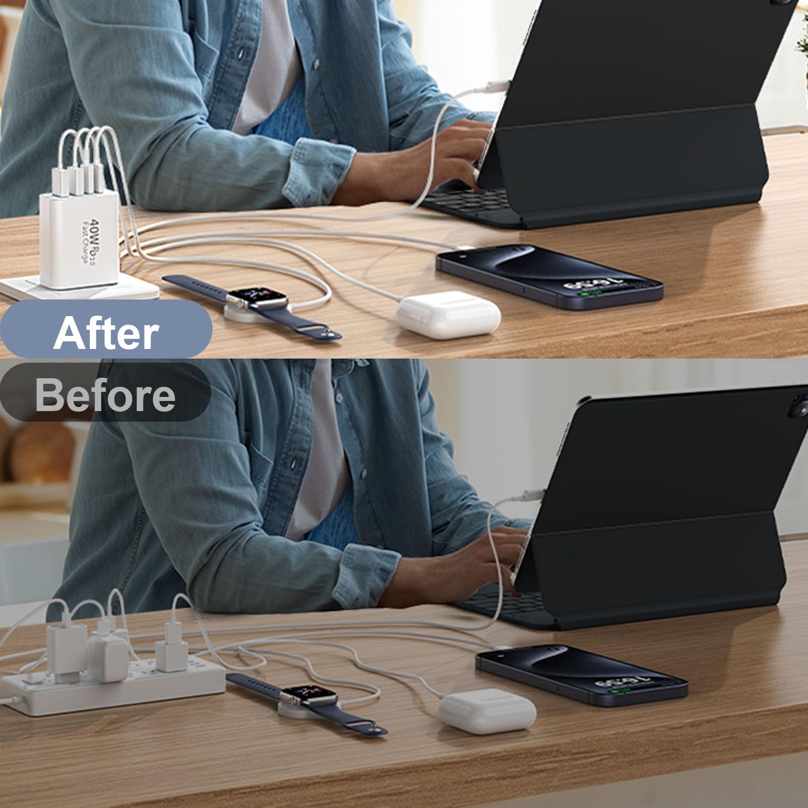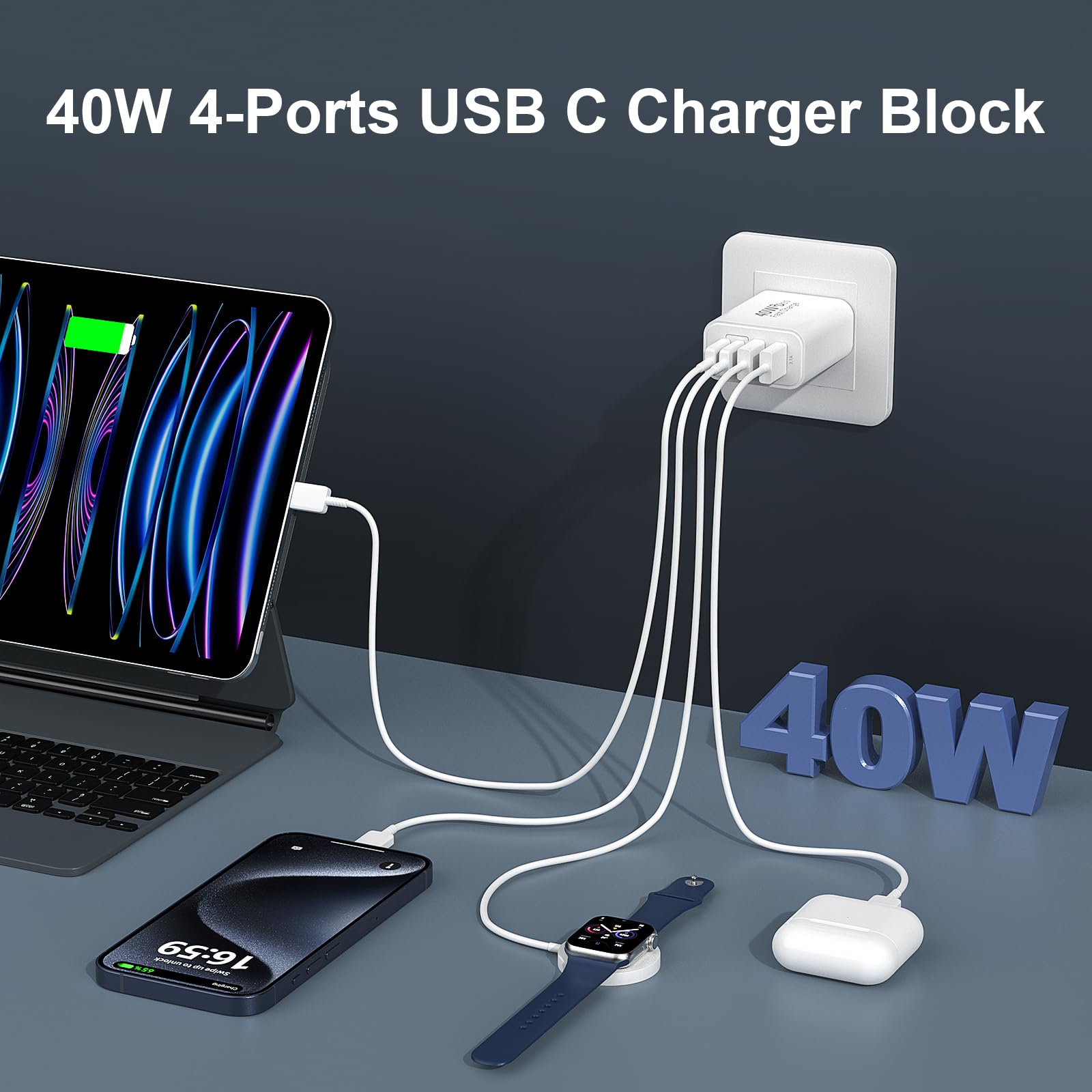 Compact and Portable Phone Charger Brick: Designed with the pocket-friendly compact body and 4-port charging cube, the USB C box is integrated to charge multiple devices at home, office and travel. Small size saves you space and fits perfectly into pockets, handbags, travel cases. Packaged with dual 40W 4-port usb c wall chargers (cable not included). If you have any problems with the c type charger block, please contact us