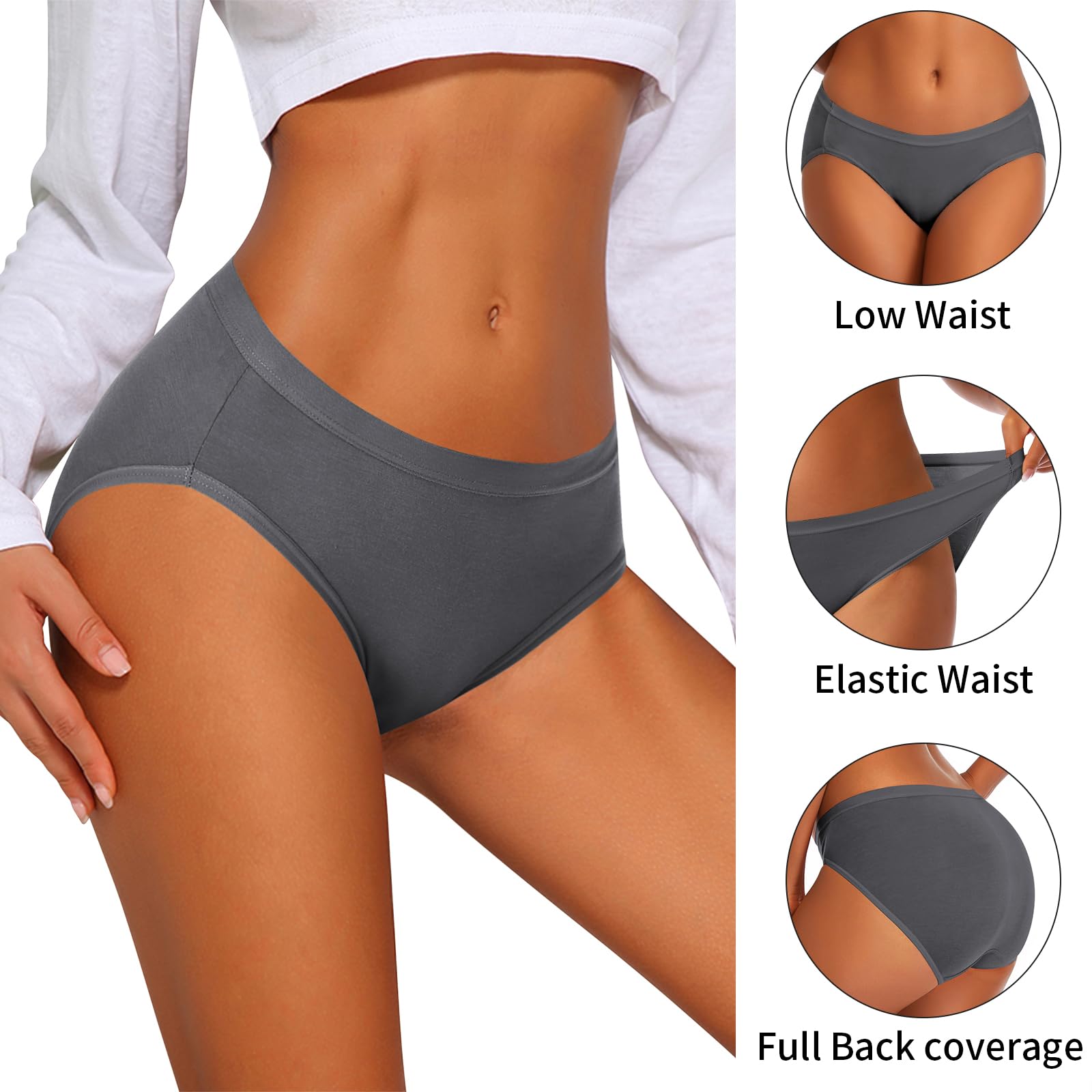 REALLY COOL MATERIAL: The fabric of this women's low rise full coverage underwear is woven with cotton,not only soft & breathable, but also cool & stretch, super comfy, you'll even forget you're wearing them