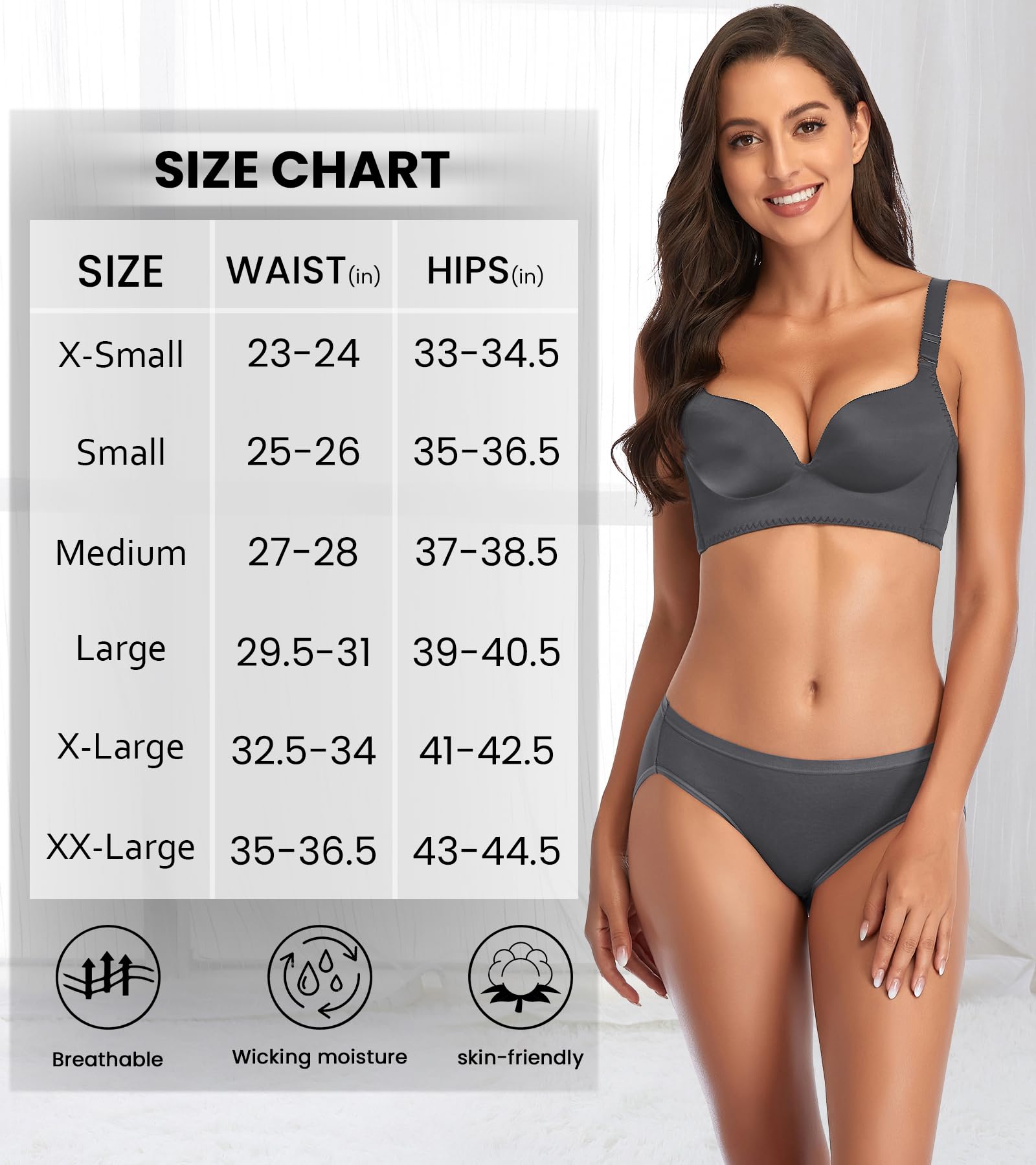 WARM TIPS: Machine wash under 86 ℉ (30 ℃), with a laundry bag will be better ,To have a better shopping experience, please read the EIGGAM women underwear size chart before purchasing.X-Small(waist:24-25,hip:34-35.5);Small(waist:26-27,hip:36-37.5);Medium(waist:28-29, hip:38-39.5);Large(waist:30.5-32,hip:40-41.5);X-Large(waist:33.5-35,hip:42-43.5); XX-Large(waist:36-37.5, hip:44-45.5)