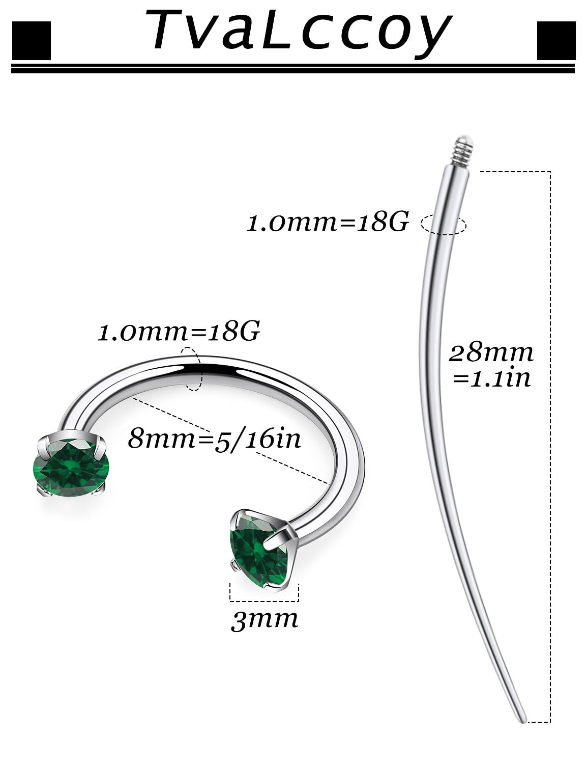 Dimension: All piercing jewelry is 18G=1.0mm, Inner diameter is 5/16in=8mm, Ends Diameter: 3mm.