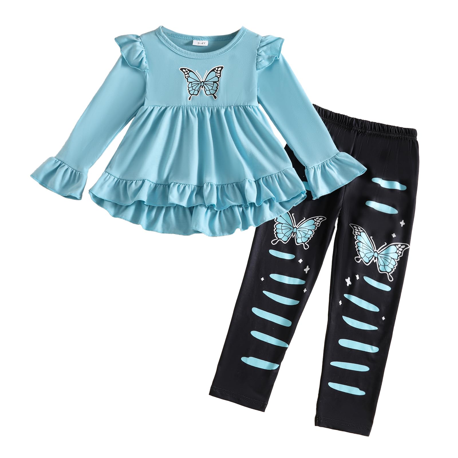 Description Toddler Girl Clothes Ruffle Sleeve High Low Top Floral Allover Pant 2PC Kid Girls Fall Winter Outfit Set