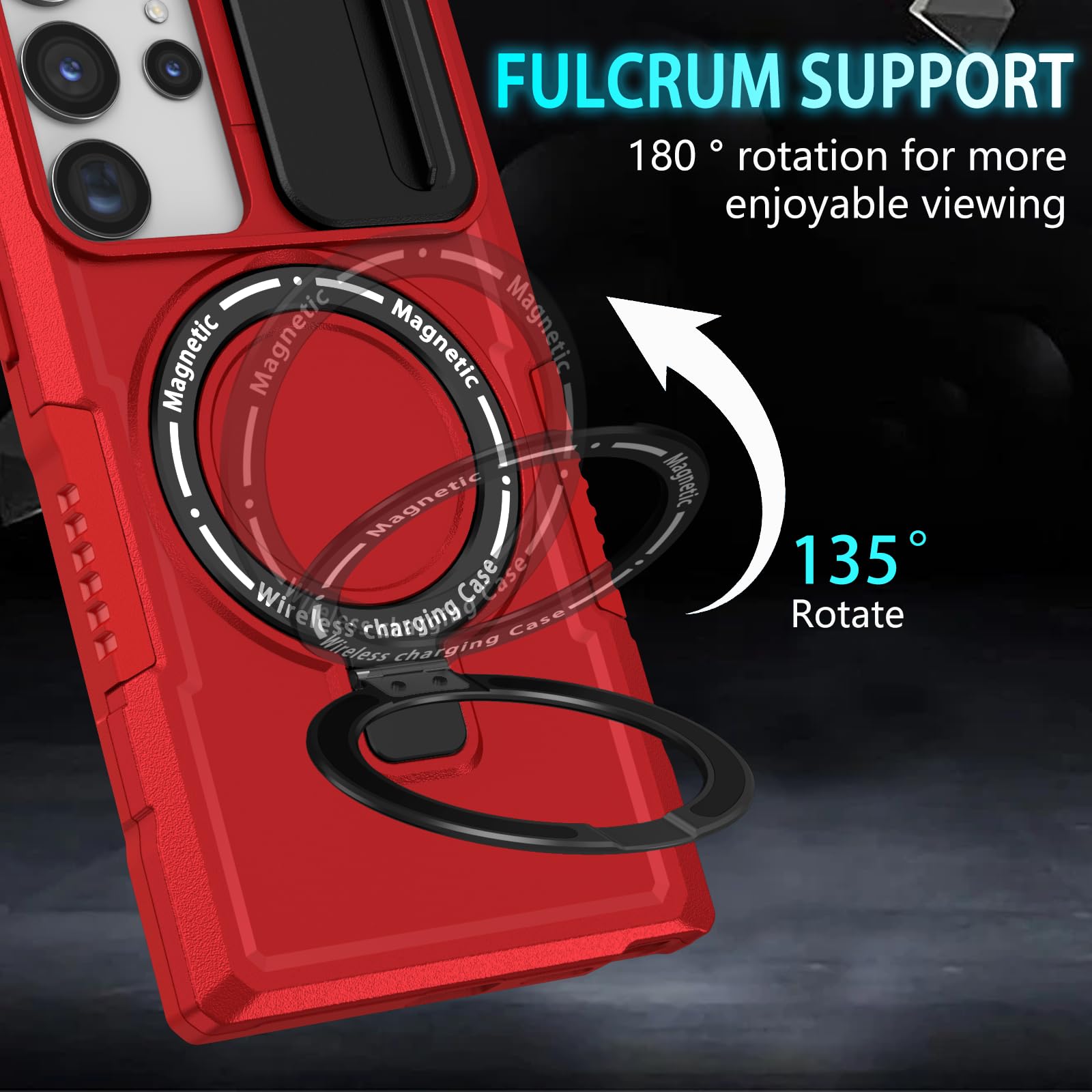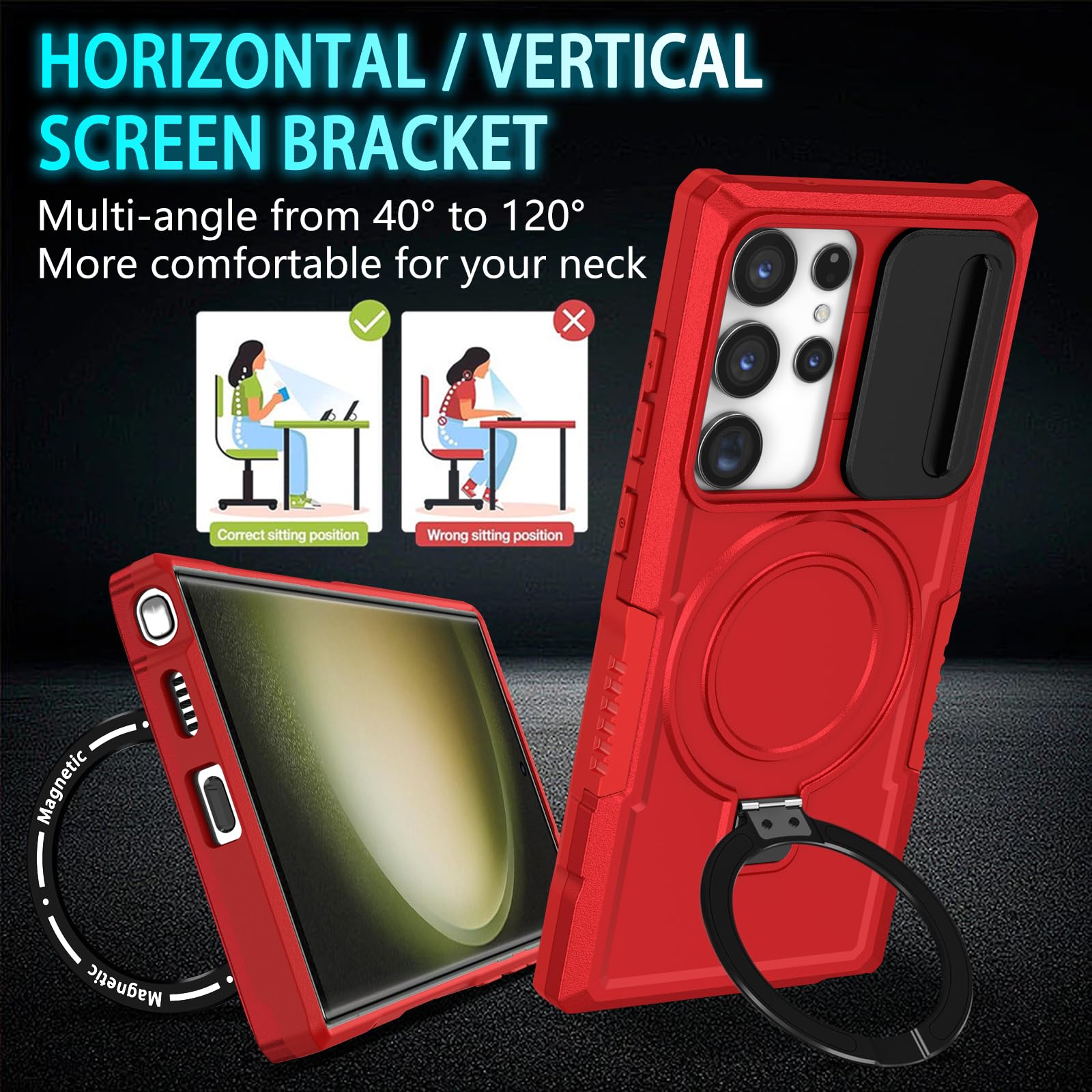 【Magnetic Ring Stand】This Samsung S23 Ultra phone case with magnetic ring kickstand provide two stand modes for vertical and horizontal viewing, can help you keep your hands free when watching web pages and videos. It can also be attached to a magnetic car mount (Not includes the magnetic car mount holder).