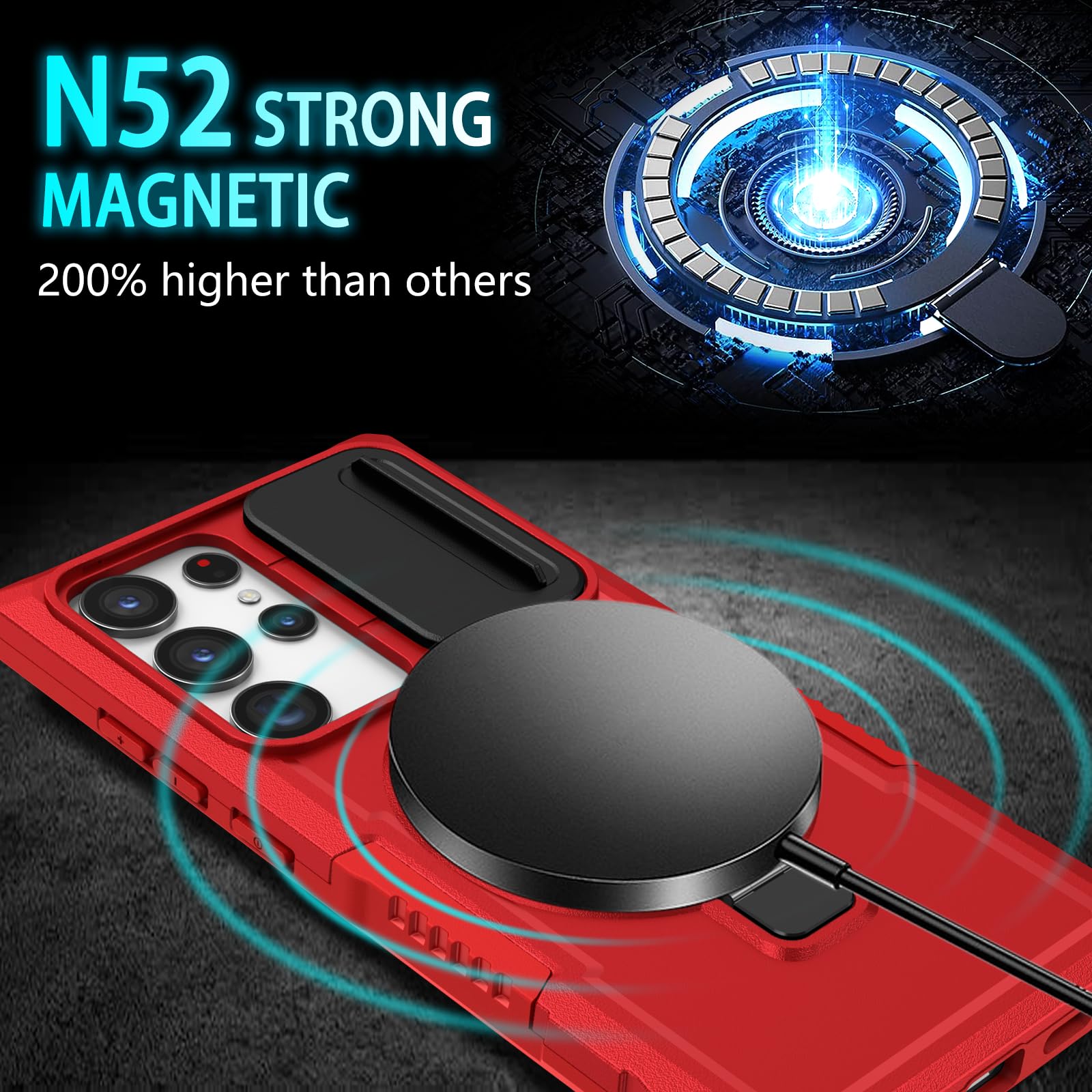 【Compatible with MagSafe】The Samsung Galaxy S23 Ultra case built-in MagSafe function and automatically adsorbs into place with magnetic charging, making charging your phone more convenient and faster. It is compatible with all MagSafe accessories like leather wallets, wireless chargers, battery packs, and car mounts.