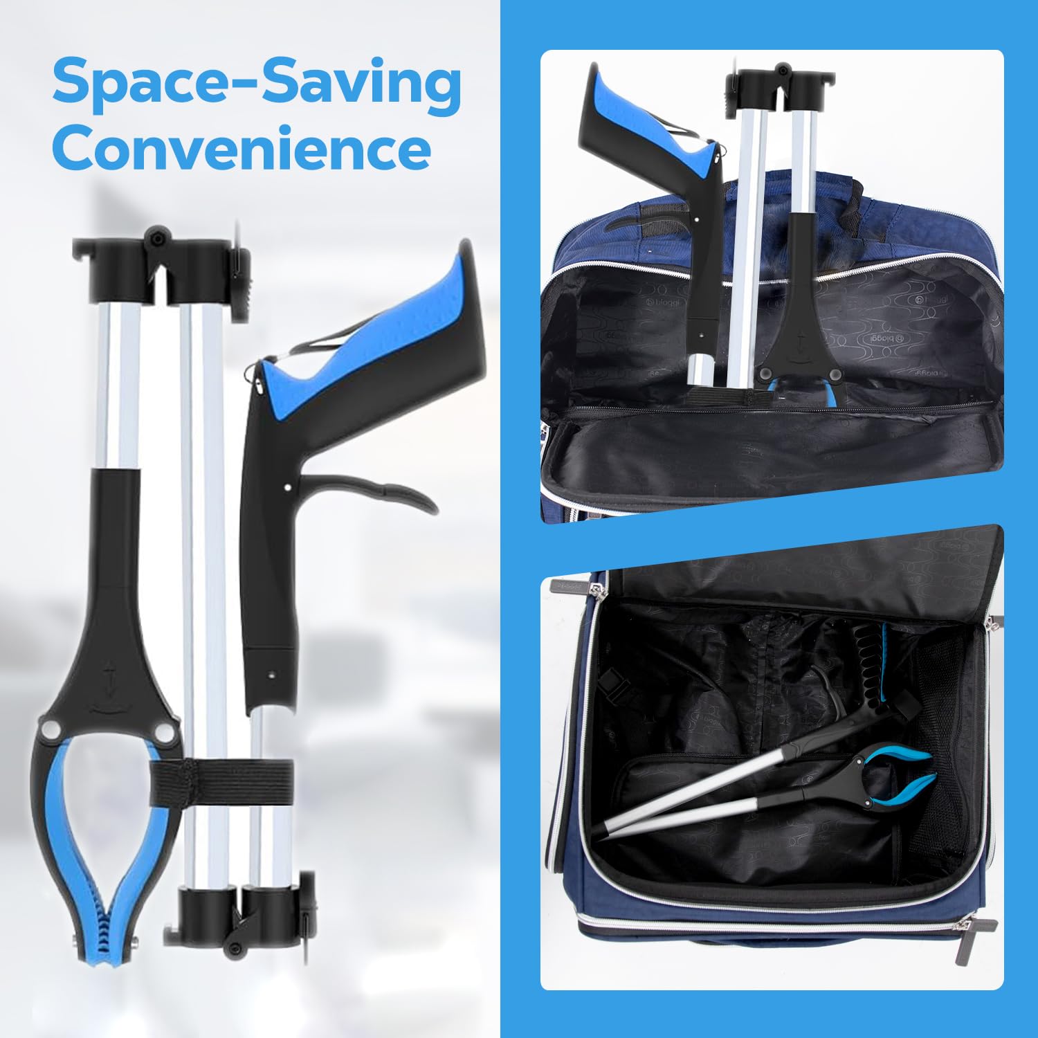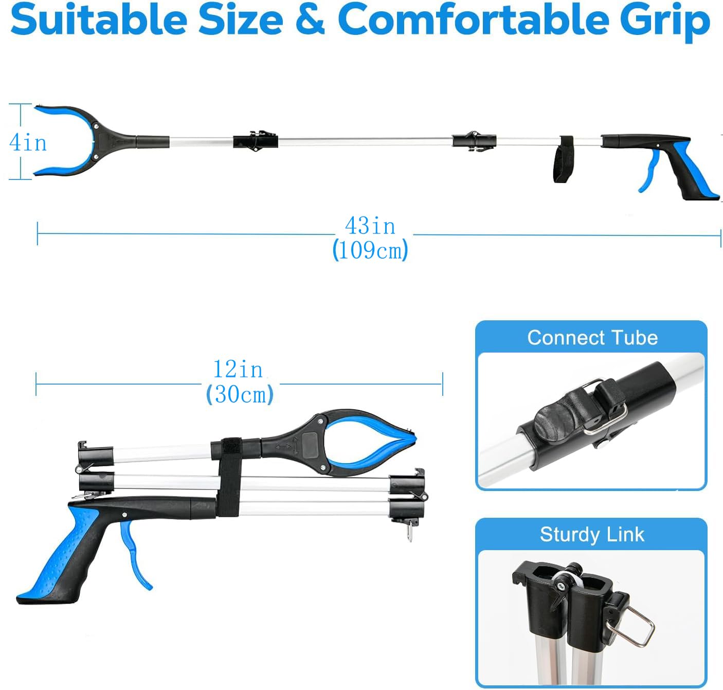 Foldable & Portable: The grabber reacher tool is foldable for easy storage and transport. It can be easily stored in your backpack, purse, or car.