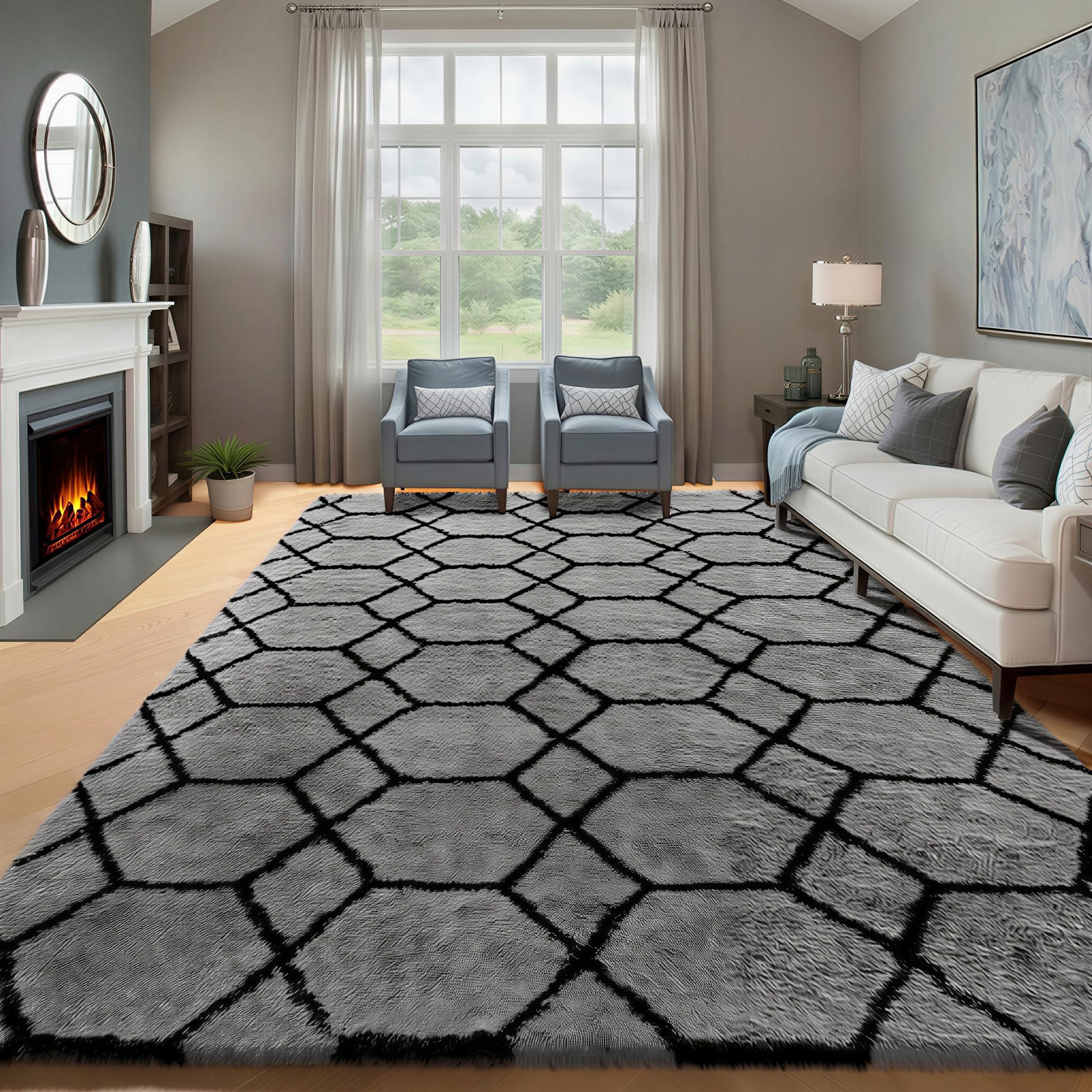 [ Modern Home Decor ]: Decorate your home with the stylish and luxurious geometric rug, and enjoy the comfort and elegance the faux fur rug provides whether in your living room or bedroom. Show off your impeccable taste with this plush room rug. It's perfect for the living room, bedroom, dorm room, nursery, children's room, girl's room, boy's room, playroom, closet, dining room, and home office.