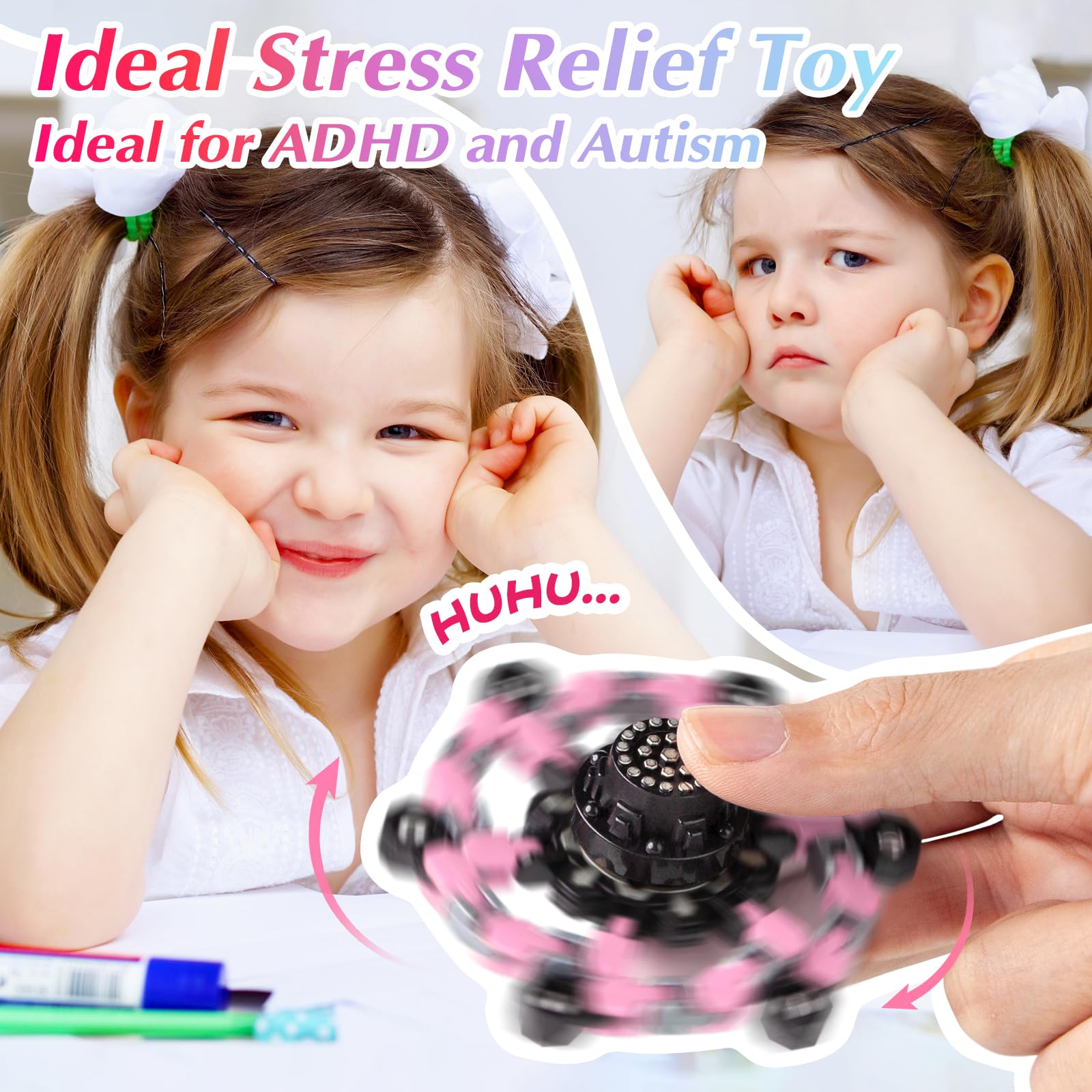 【Cool Fidget Spinners for Girls】 Each of fingertip gyro has a a high speed bearing in the center to ensure the smoothest rotation and consistency. 6 deformable chains around the spinner to increase centripetal force and spinning time. So these finger spinners can spin for several minutes