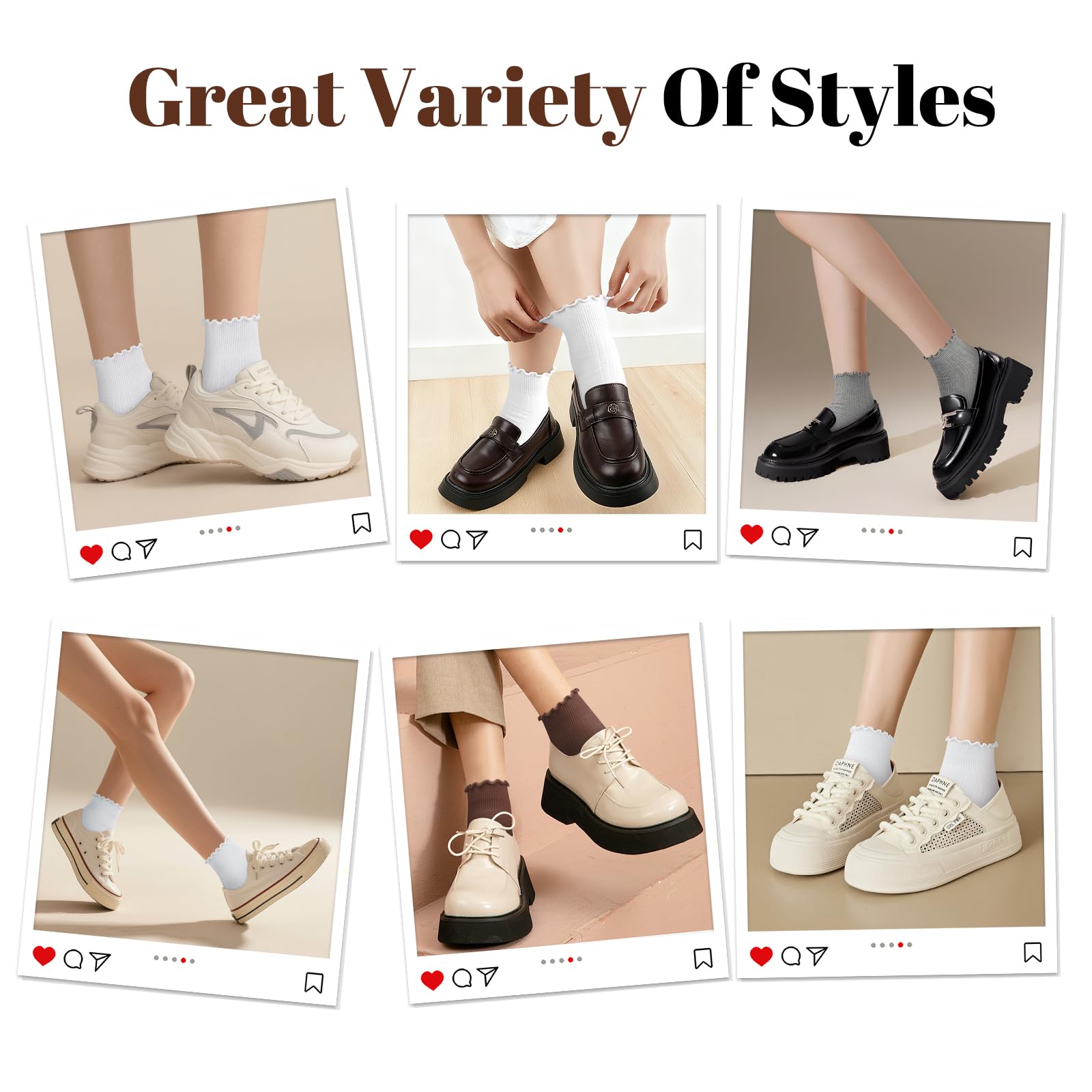 [ Multi-Style Socks]Our convertible frilly socks offer multiple looks: wear them pulled up as slouch socks, folded down as ankle socks, or inside-out to showcase delicate lace. With various colors available, these fashion athletic crew socks effortlessly elevate any outfit - perfect with dresses, sneakers, or casual shoes.