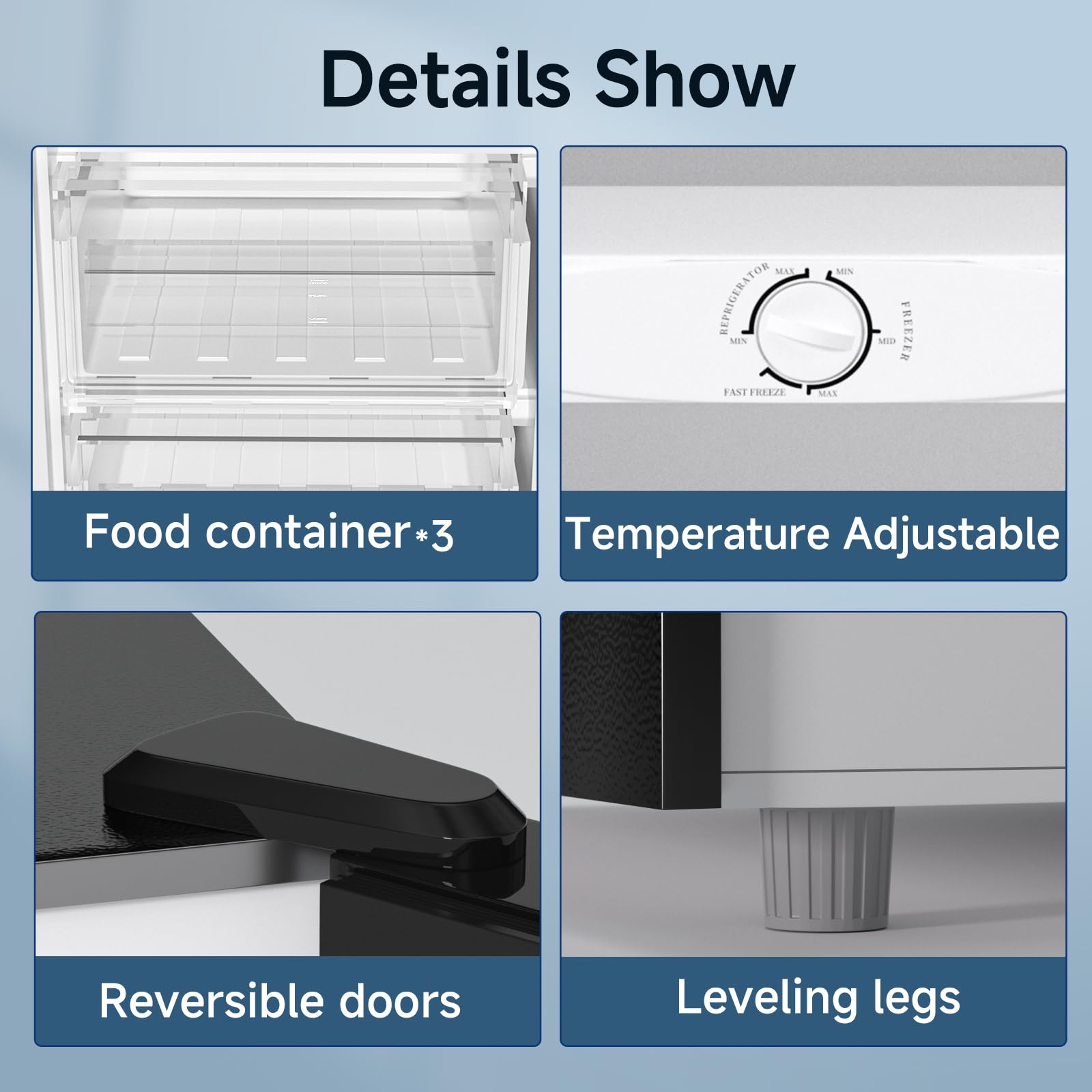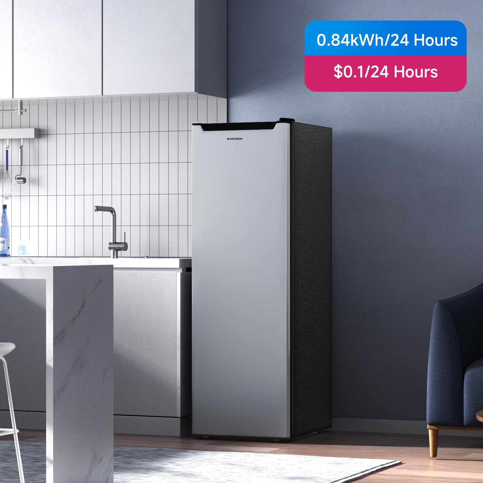 Enhanced Details:BANGSON's compact refrigerator comes with a reversible door to suit your preferences. Leveling feet on the bottom allow for stable placement on uneven floors. The built-in handle not only makes it easy to open the freezer door, but it also makes the freezer cleaner and more aesthetically pleasing.
