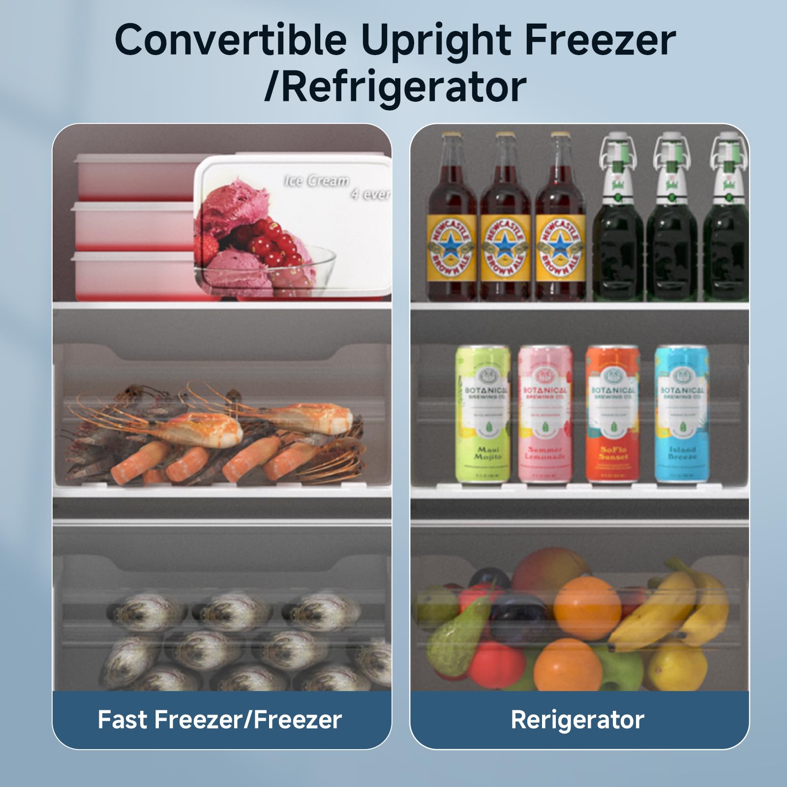 Convertible Freezer/Refrigerator:This Bangson Upright Freezer can easily be changed from an upright freezer to a no-freezer refrigerator and then back to an upright freezer. Temperature range: Freezer: -7.6(℉)-6.8(℉), Refrigerator: 38(℉)-47(℉).