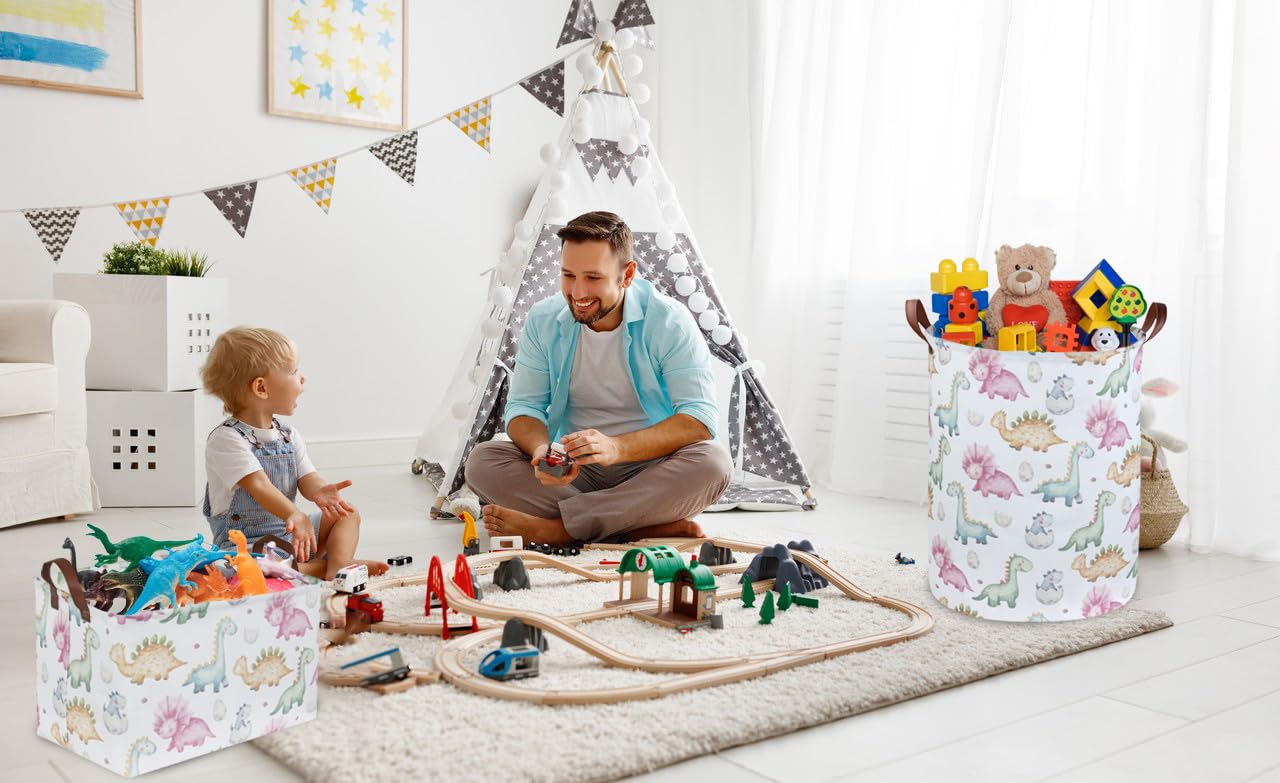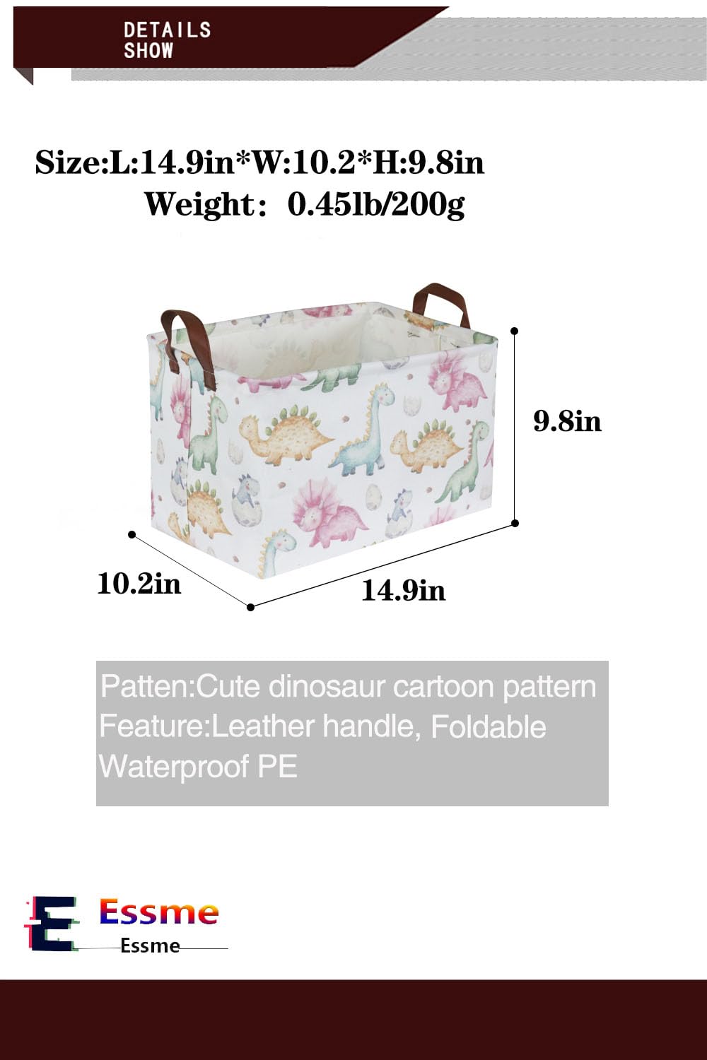 DIMENSIONS:14.9(Length) x 10.2 (Width)x 9.8(Height) inches, perfect rectangle dinosaur baskets for nursery organizer