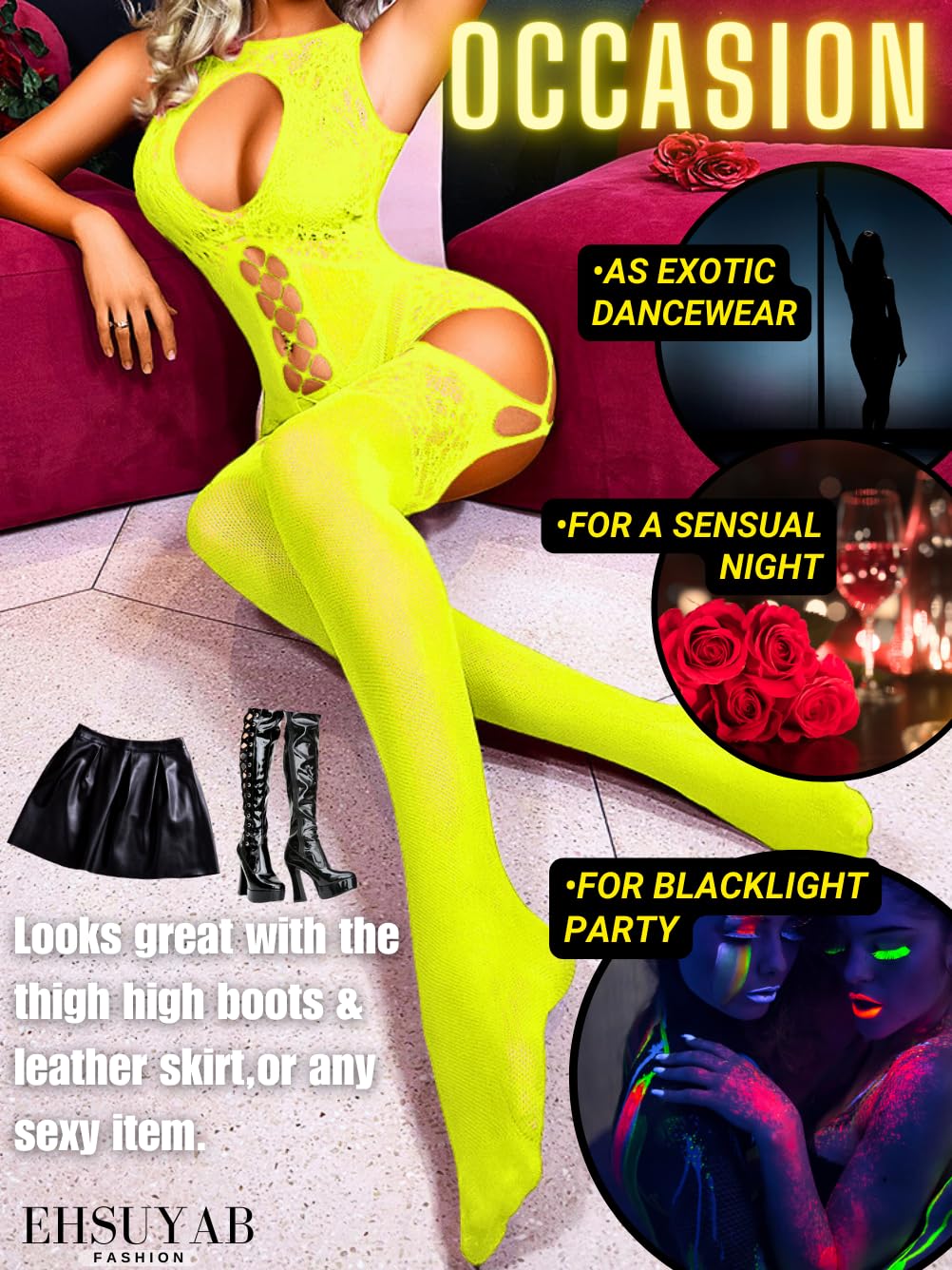 【Occasion】For: Date Night / Valentine's Day / Blacklight Party / Clubwear / Rave / Boudoir Shoot