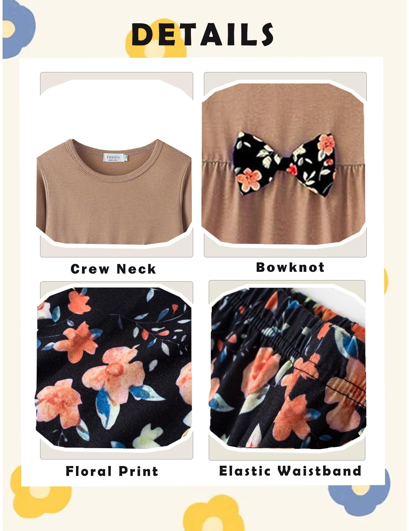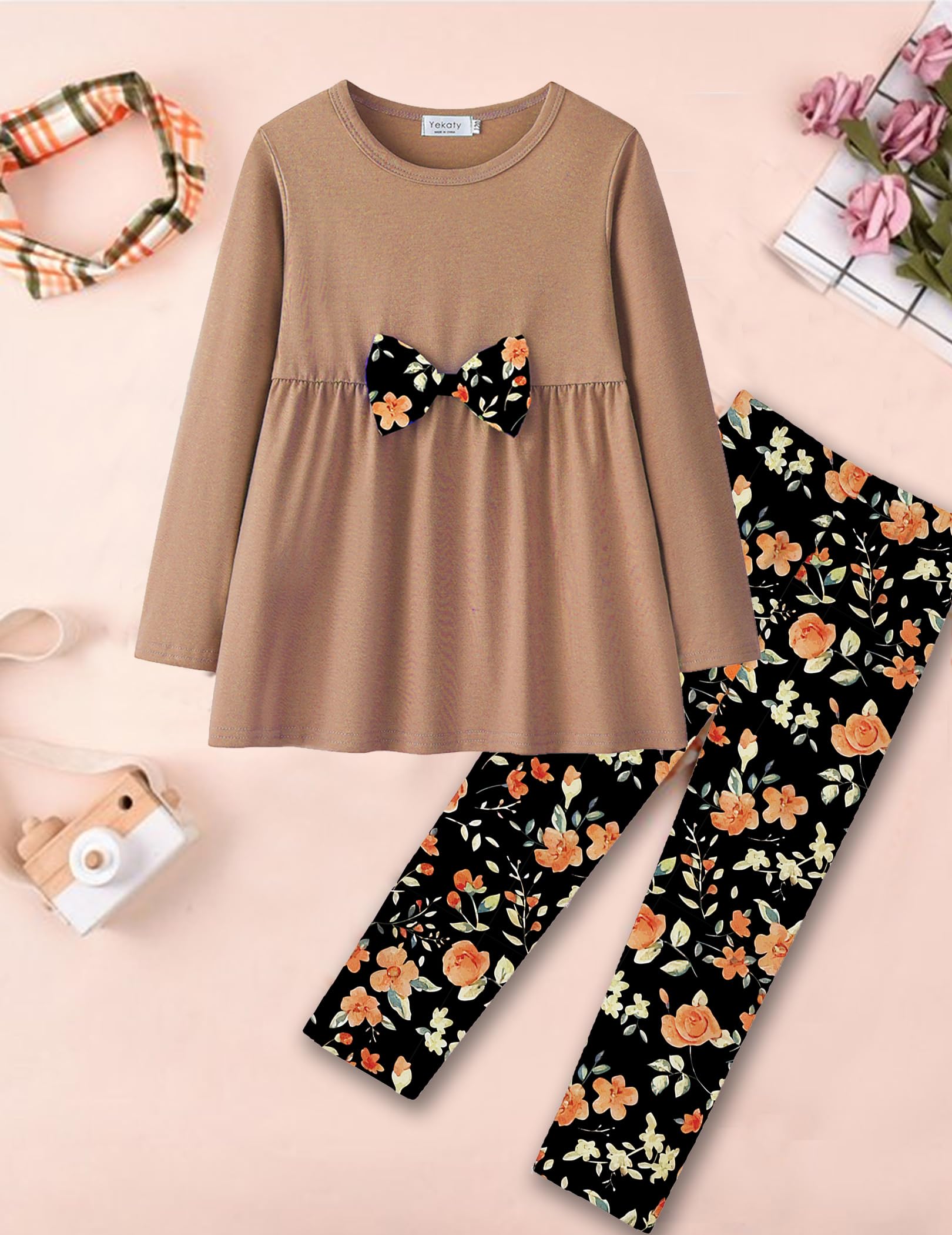 Bowknot Design--Girls outfits come with long sleeve shirts and cute floral pants. The girls tops are super cute with the classic round neck and added an little bow in the middle which is a nice touch and makes it even more classy and adorable, matching well with the floral leggings. The pants feature an elastic waistband that easily to put on/off.