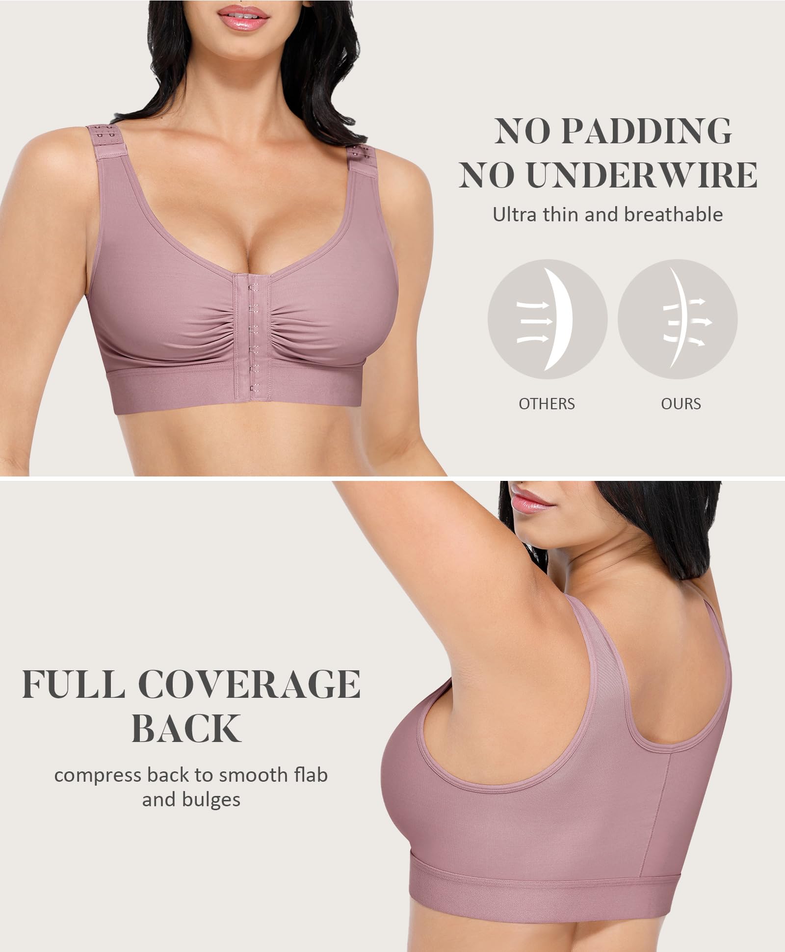 EFFECTIVE BREAST SUPPORT: The push-up bra posture shapewear tops for women effectively bring the breasts together to prevent sagging. This post-surgical liposuction compression mastectomy bra provides excellent full-coverage soft compression support for faster swelling recovery after breast lift, breast reduction, breast augmentation, and breast implant surgeries.