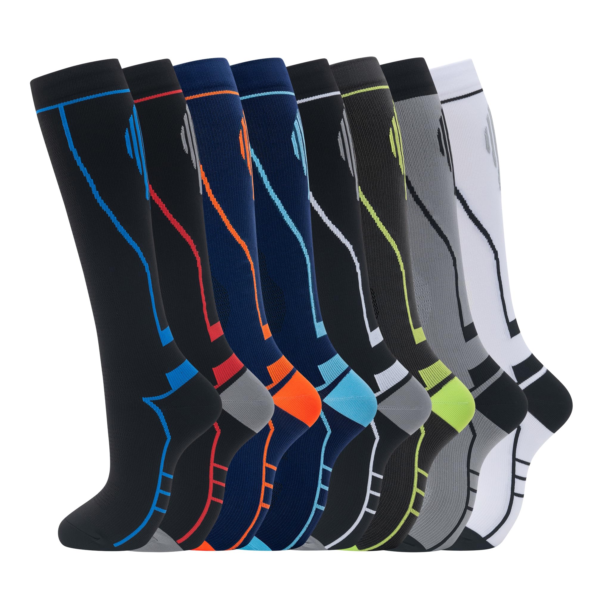 VERSATILE STYLE FOR ALL OCCASIONS: Our compression socks for men and women fit various lifestyles. Whether you're running, traveling, nursing, flying, pregnant, or need muscle support, these long compression socks men have you covered with high-quality performance. Suitable for all sports, cycling, skiing, mountain climbing, football, hiking, jogging, tennis, marathon, hockey, soccer, basketball, golf, etc. From daily wear to special occasions, experience lasting comfort.