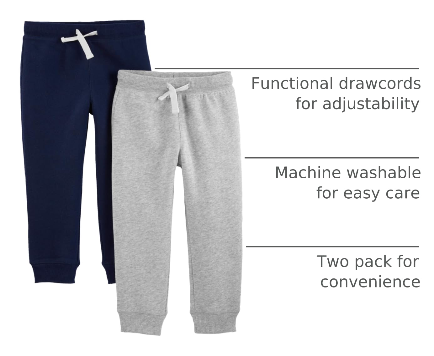 Description Keep your little one cozy and stylish with the Simple Joys by Carter's 2-pack fleece pants. These soft and warm pants are GREAT for cooler weather, providing a comfortable fit thatβs ideal for all-day wear. Designed with fun, vibrant colors, they add a playful touch to your childβs wardrobe. The jogger fit ensures a snug yet flexible feel, making them GREAT for running, jumping, or simply relaxing at home. Each pair features a practical drawstring waist for an adjustable fit, ensuring these pants stay in place as your child grows. The fleece fabric provides a soft and warm feel against the skin, while the tapered jogger design adds a modern twist to a classic style. With the convenience of a 2-pack, youβll have two versatile options to mix and match with your childβs favorite shirts, hoodies, or jackets. Whether for playdates, outings, or lounging around, these fleece pants are an easy, comfortable, and colorful addition to your child's everyday wardrobe. GREAT for layering or wearing on their own, these pants make dressing your little one a breeze.