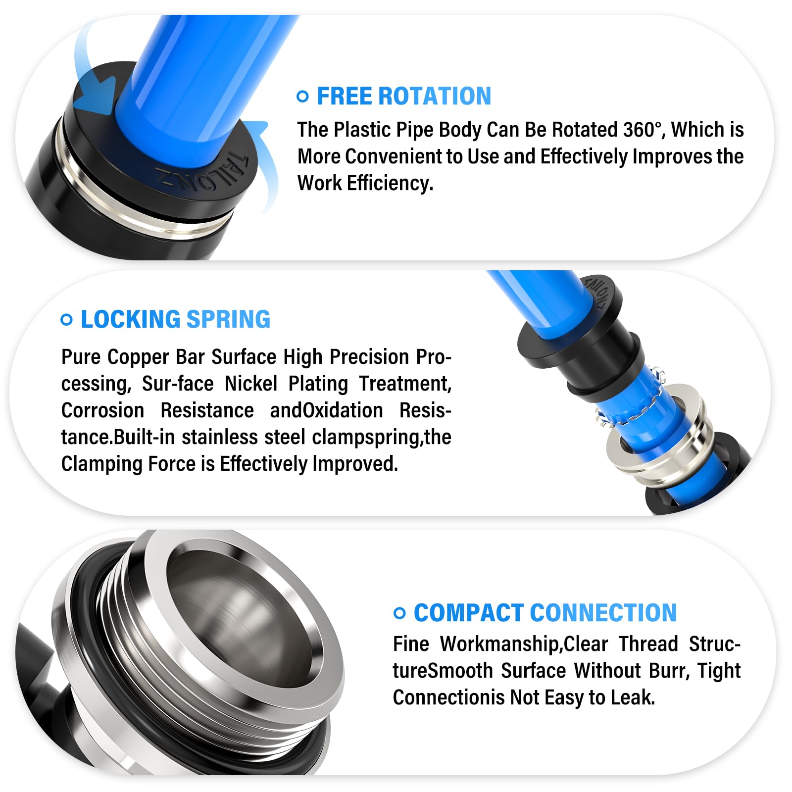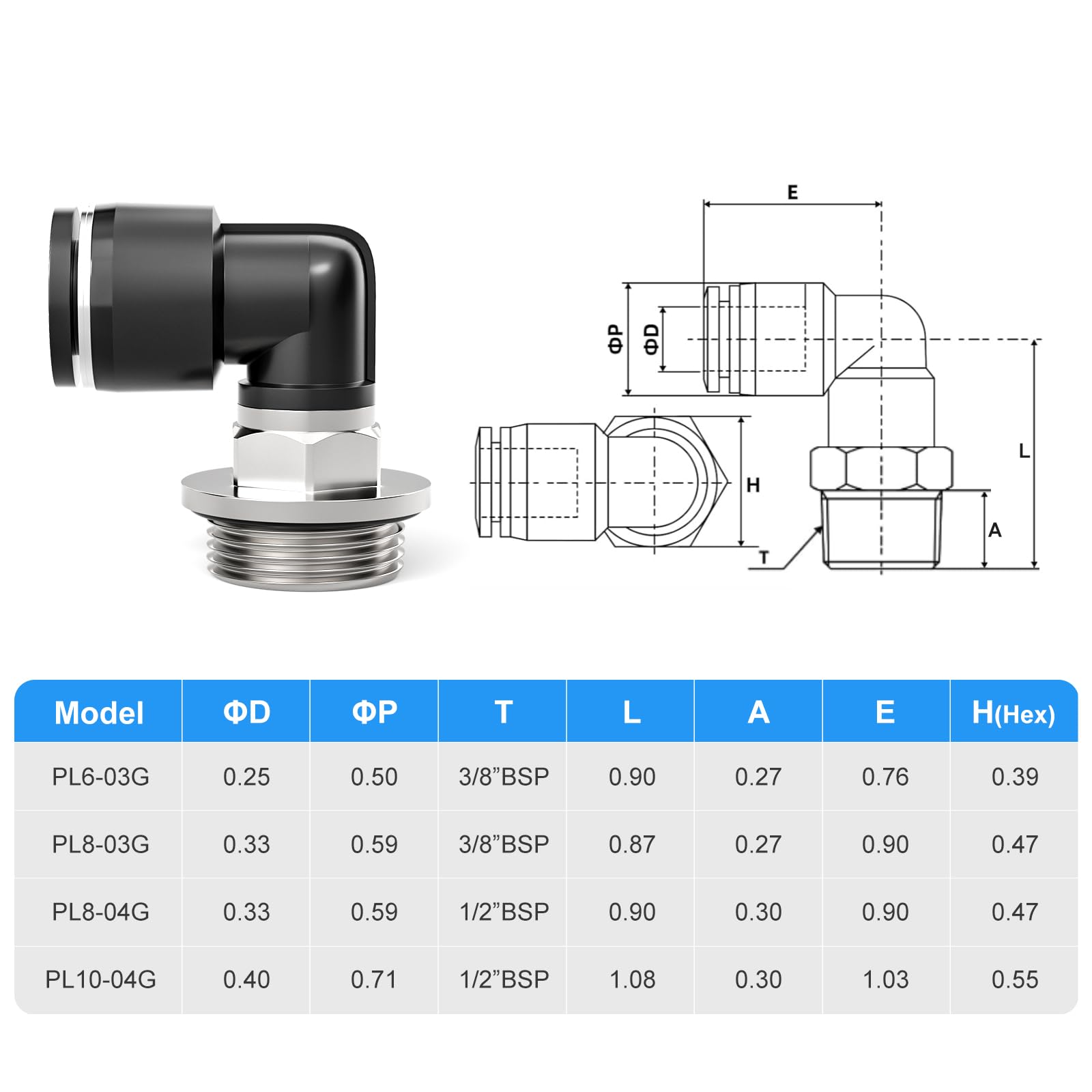 ★Product Specification: Size:8mm Tube OD x 3/8 Inch BSP Material: Copper and Plastic Shape: Elbow Shape Pressure Range: 0 ~ 145Psi Operating Temperature Range: 32~140°F Medium: Water, Air,Oil Etc. ★Package Included: Elbow Shape Tube Fittings Push Lock (10Pcs) ★Product Feature: 1. Corrosion Resistance, High Density, Not Easy to Burst. 2. The product is Sturdy and Durable and Has a Long Service Life. 3. Easy Assembly, Easy and Simple. 4. It Can be Used for The Connection of pipes and The Use of Different Pneumatic Components, and Has a Wide Range of Uses. ★Attention! 1.Do Not Use for Fittings for Drinking Water Pipes. 2.Avoid Contact with Fire Sources. 3.Working Pressure Must Not Exceed 145psi. 4.Do Not Use Fittings under Extra External Load (Bend, Twist or Pull), Otherwise It will Cause Damage or Leakage. 5.Avoid Mixing with Incompatible Materials (Strong Oxidants, Acids, Bases, Etc.).