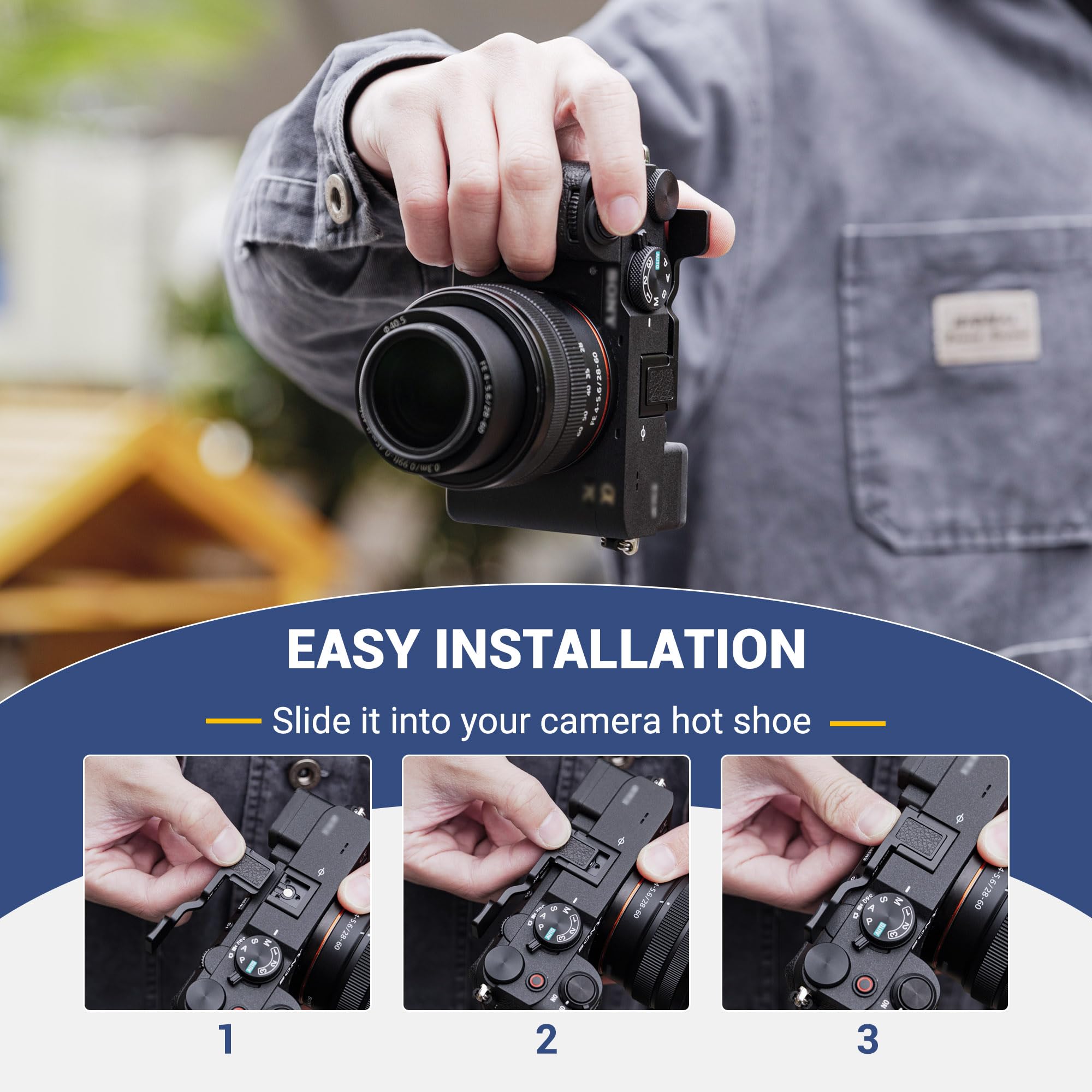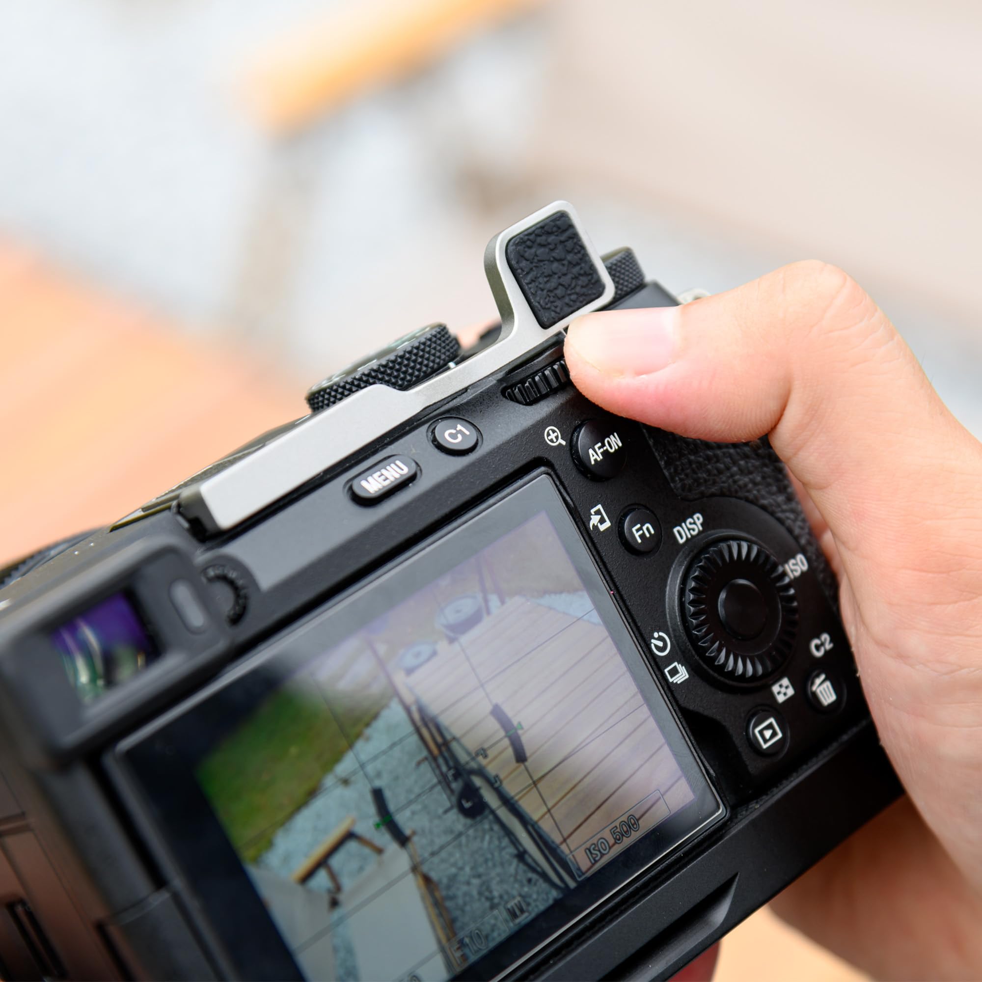 Easy to install. The A7C2 A7CR thumb up grip is attached to your Alpha A7C II Alpha A7C R camera via the hot shoe to provide comfortable contact with the camera. Silicone pads in contact with the hot shoe protect the hot shoe contacts from dust and moisture.