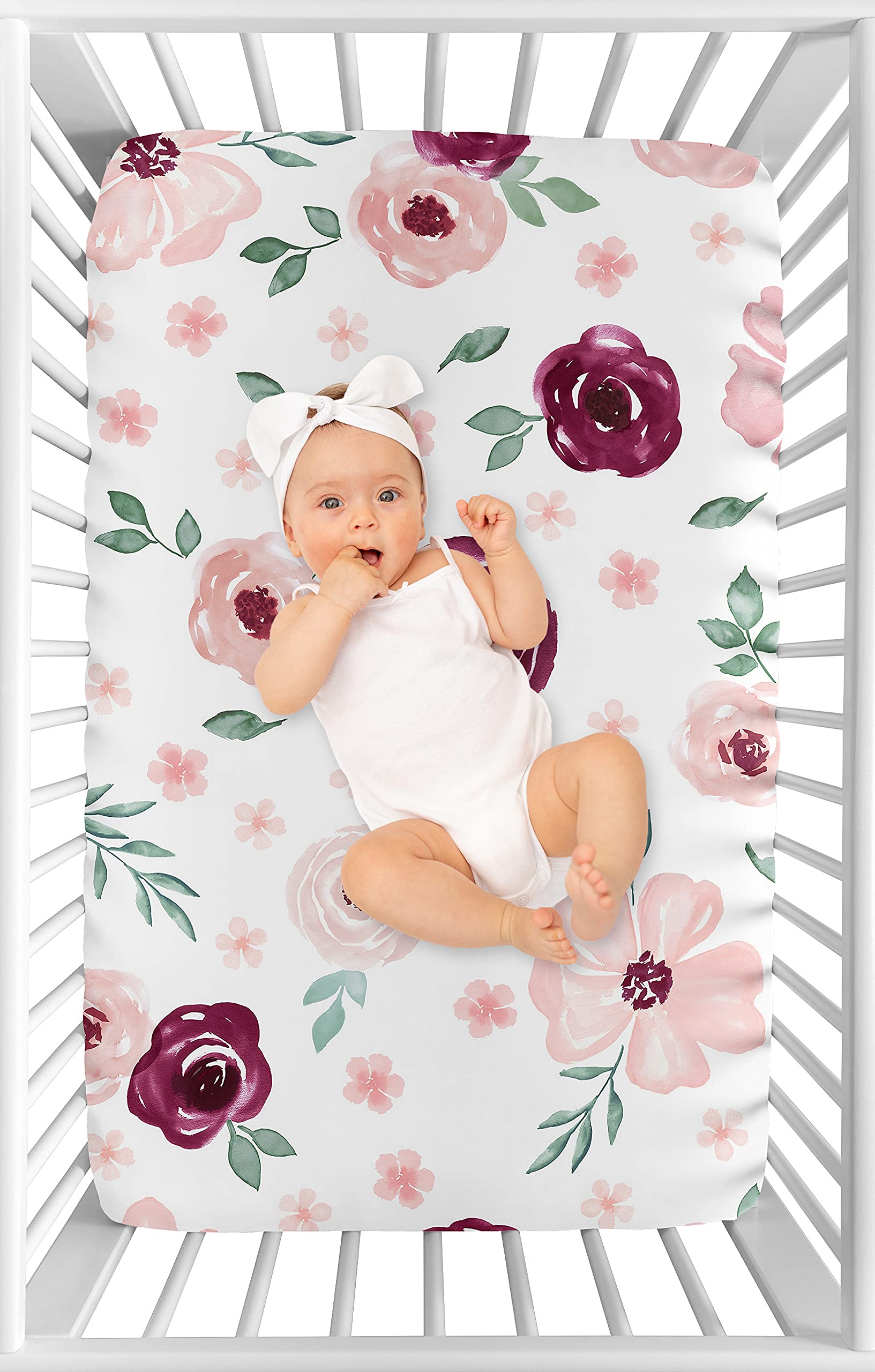 Brushed Microfiber - Burgundy, Wine and Pink Watercolor Floral Print