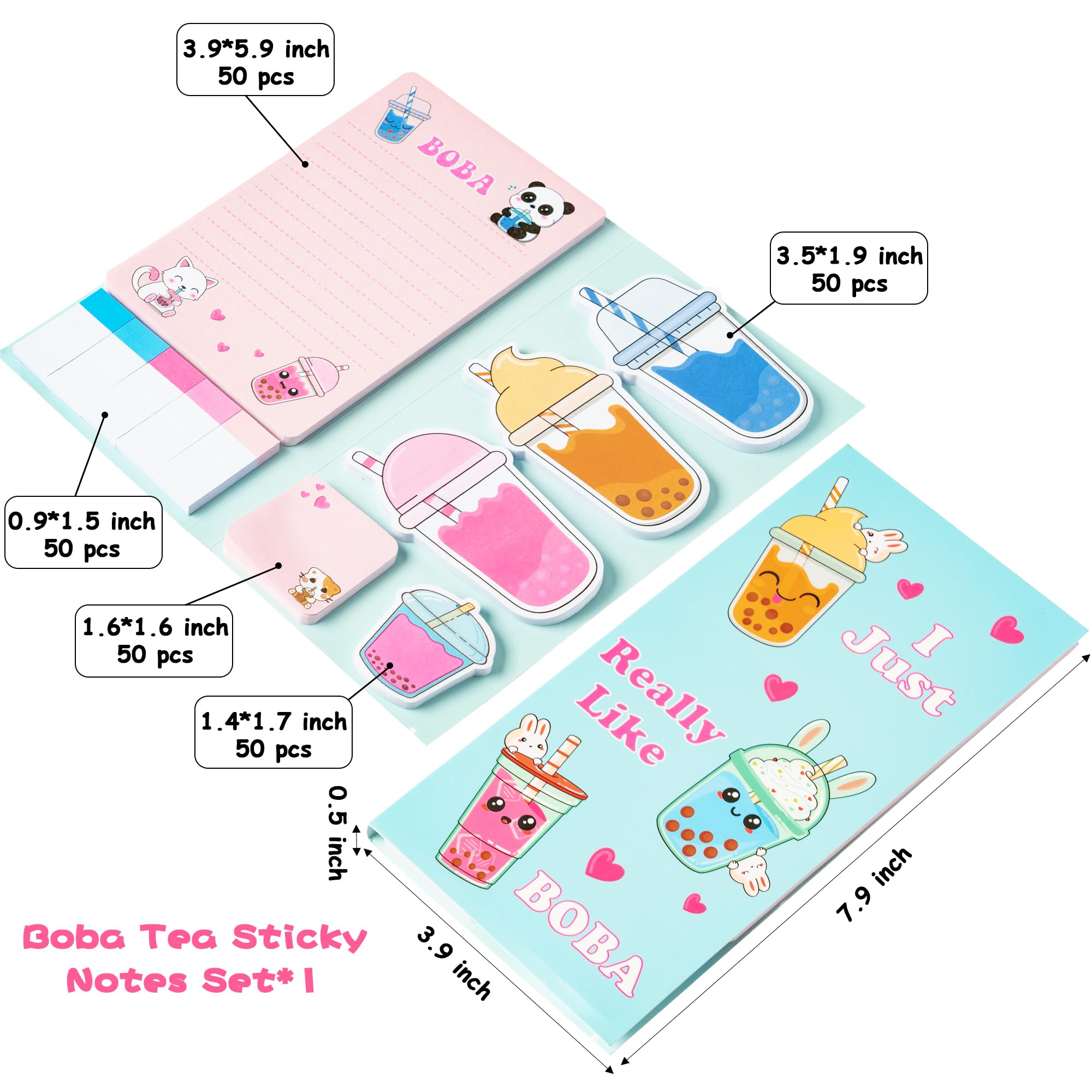 Boba Tea Sticky Notes Set: You will get a set of boba tea sticky notes, there are many self-adhesive note pads in different styles and sizes. This set of sticky notes with perfect size, which is easy to carry and fit in your bag. 50 sheets per pad, 550 sheets in total. Meet your various needs