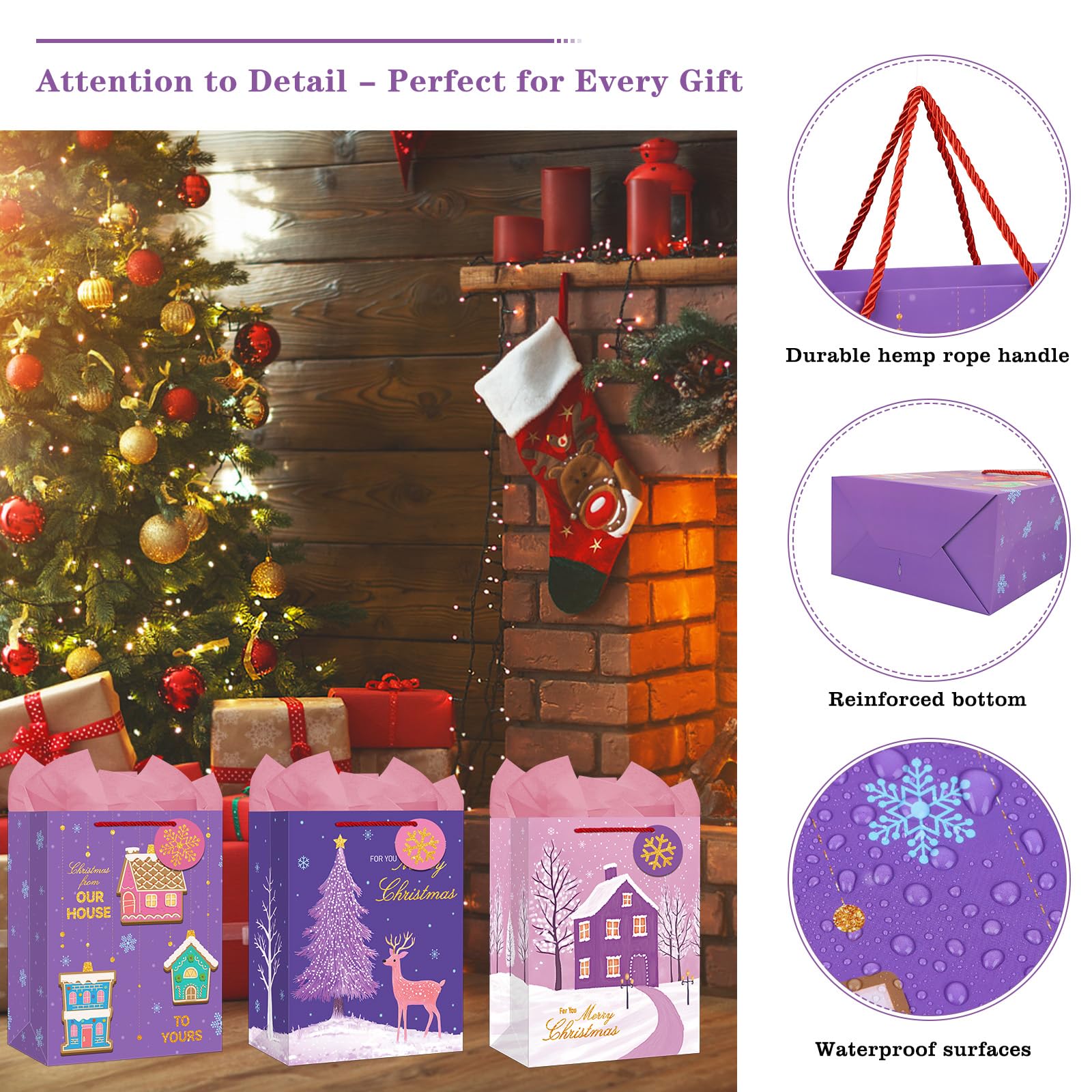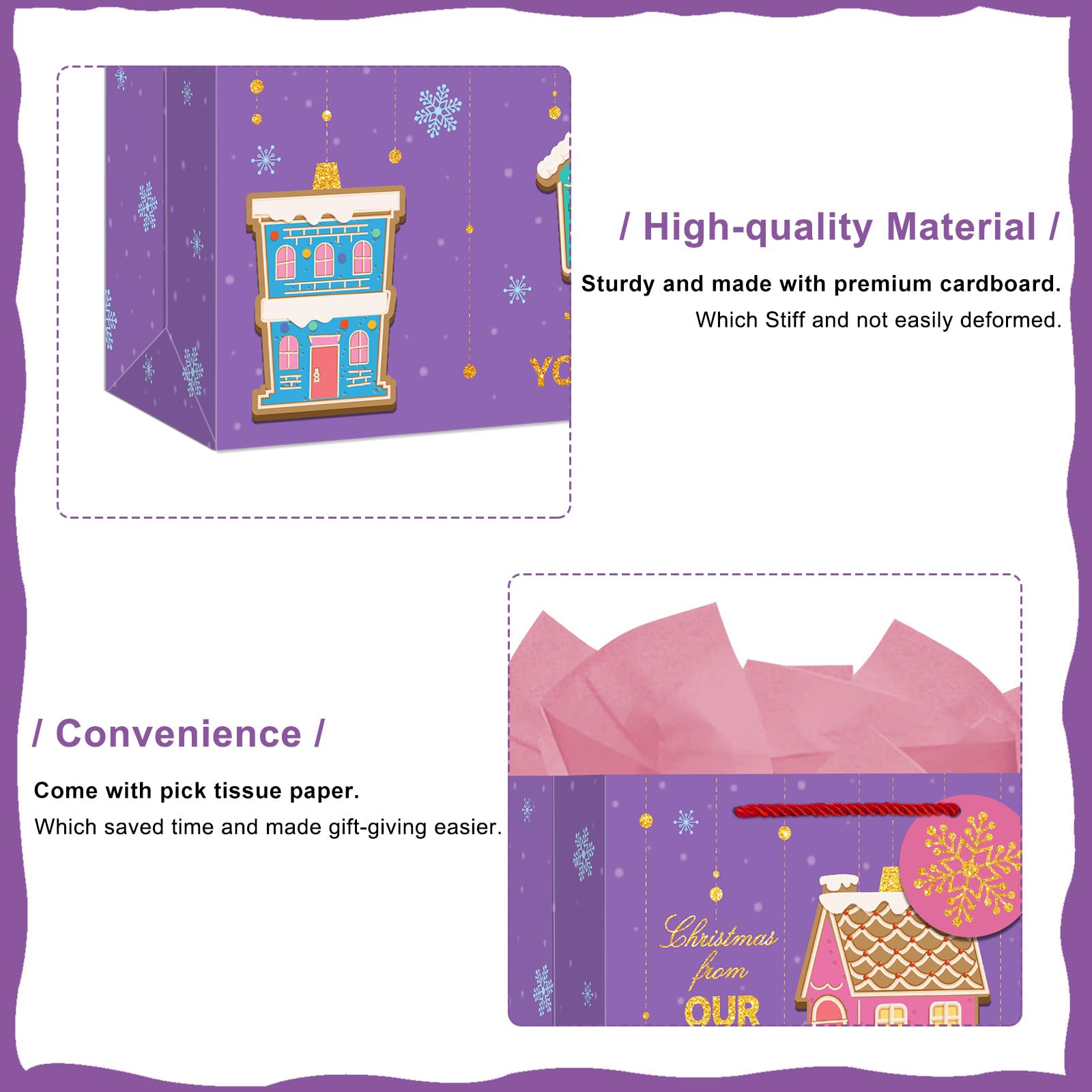 【Ensure Durability and Reusability】: Made from high-quality paper, these Christmas gift bags are sturdy and reusable, ensuring they can hold a variety of presents and be used for multiple occasions.