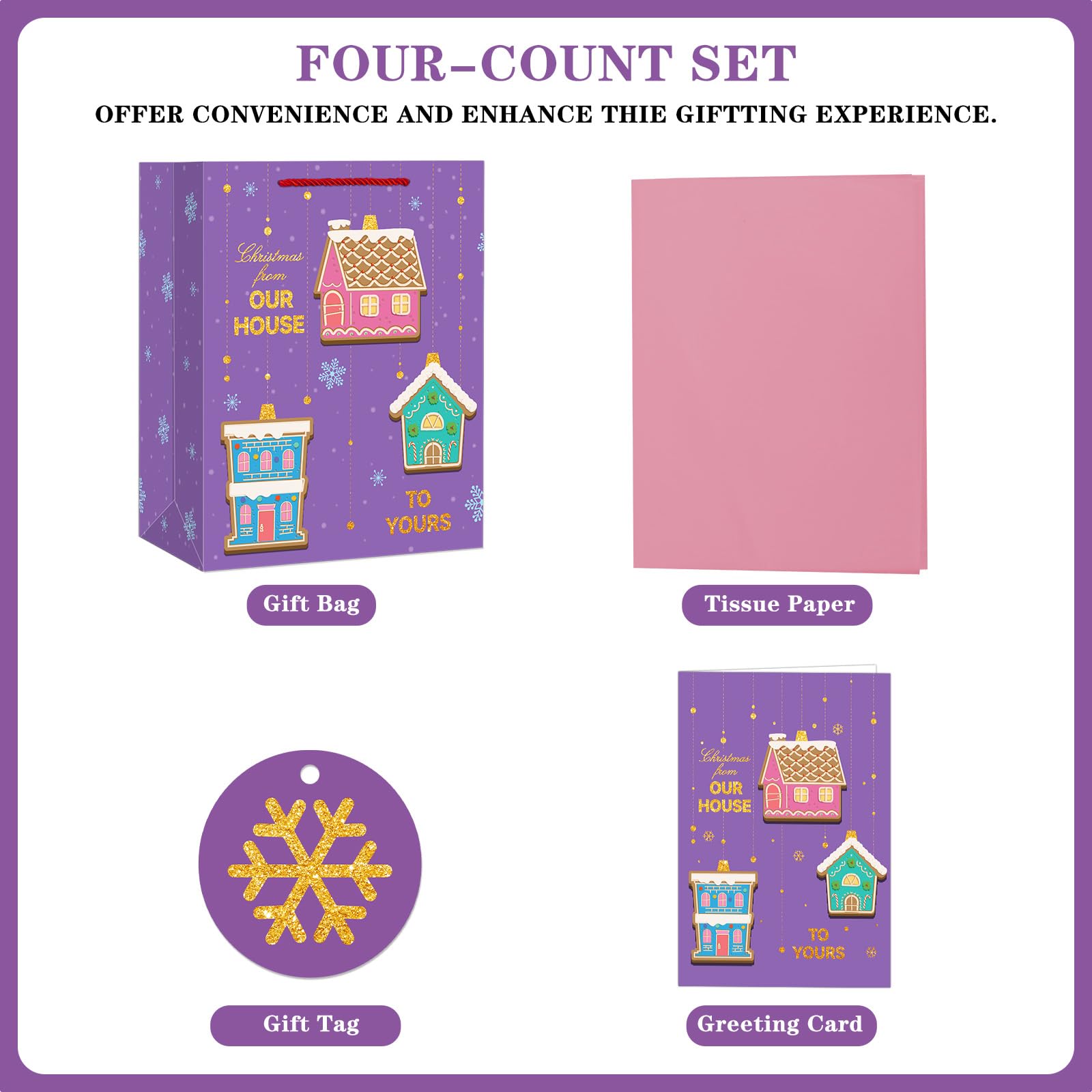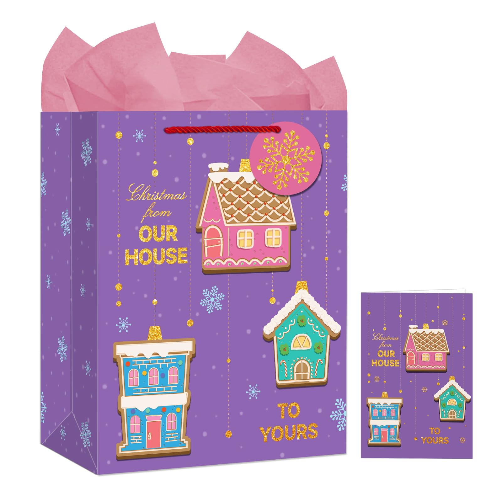 【All-In-One Gift Solution】: Each xmas gift bags comes with matching tissue paper, a gift tag, and a card, providing you with everything you need to present your gifts beautifully and conveniently.