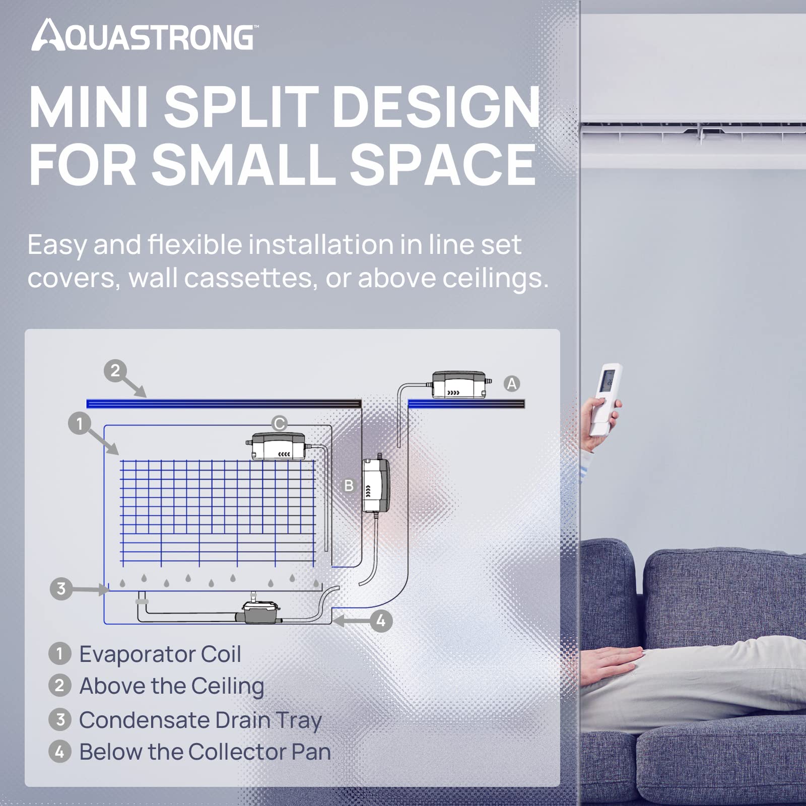 Worry-free: Small powerful condensate pump for air conditioners, dehumidifiers, condensing boilers and furnaces. Aquastrong customer service provides professional tech supports