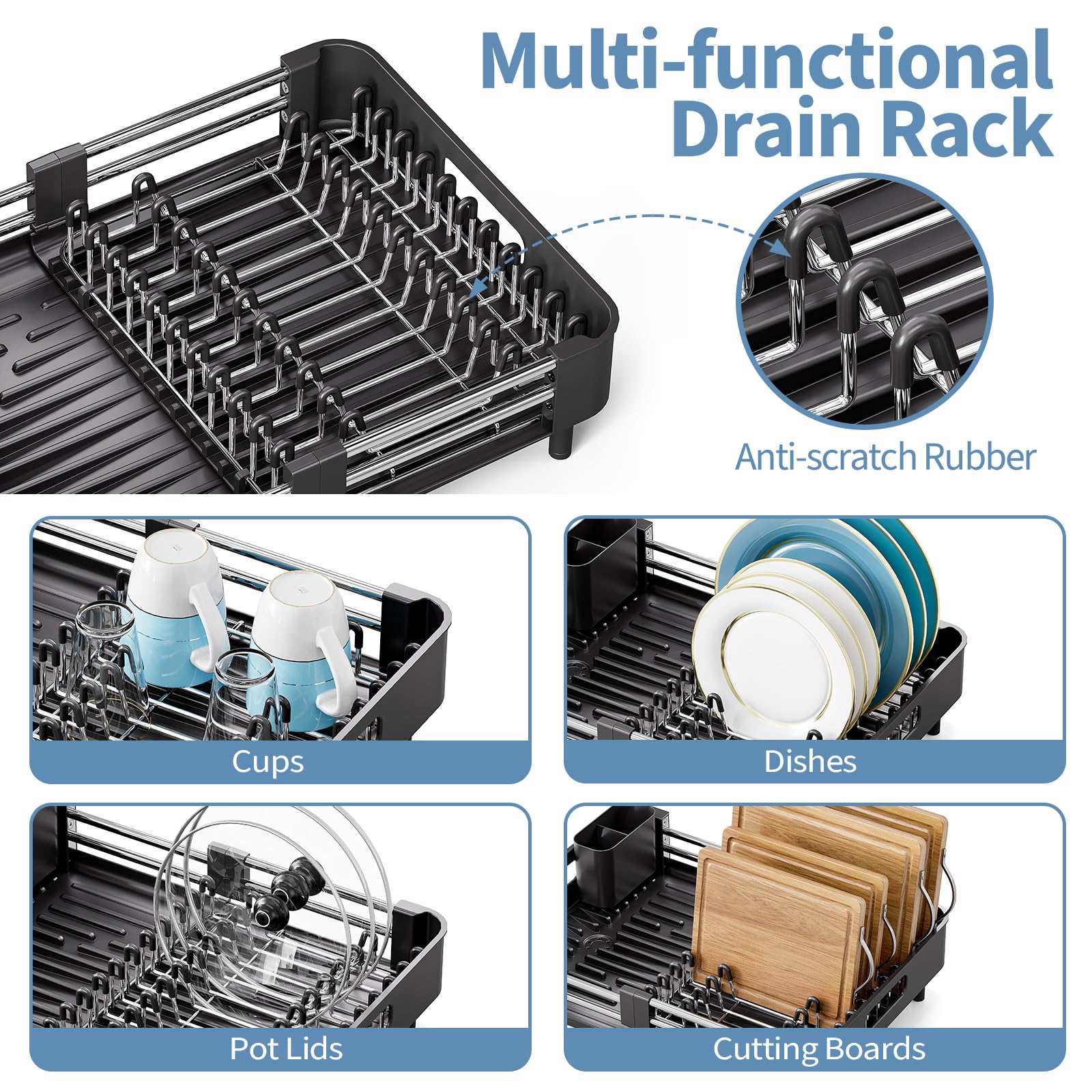 [ MULTIFUNCTIONAL & PRACTICAL ] Urackify adjust dish rack make it not just suitable for storing plates but also fit to bowls and mugs ect. The whole dish drainer rack can hold up to more than 10 plates, mugs, tablewares and several bowls