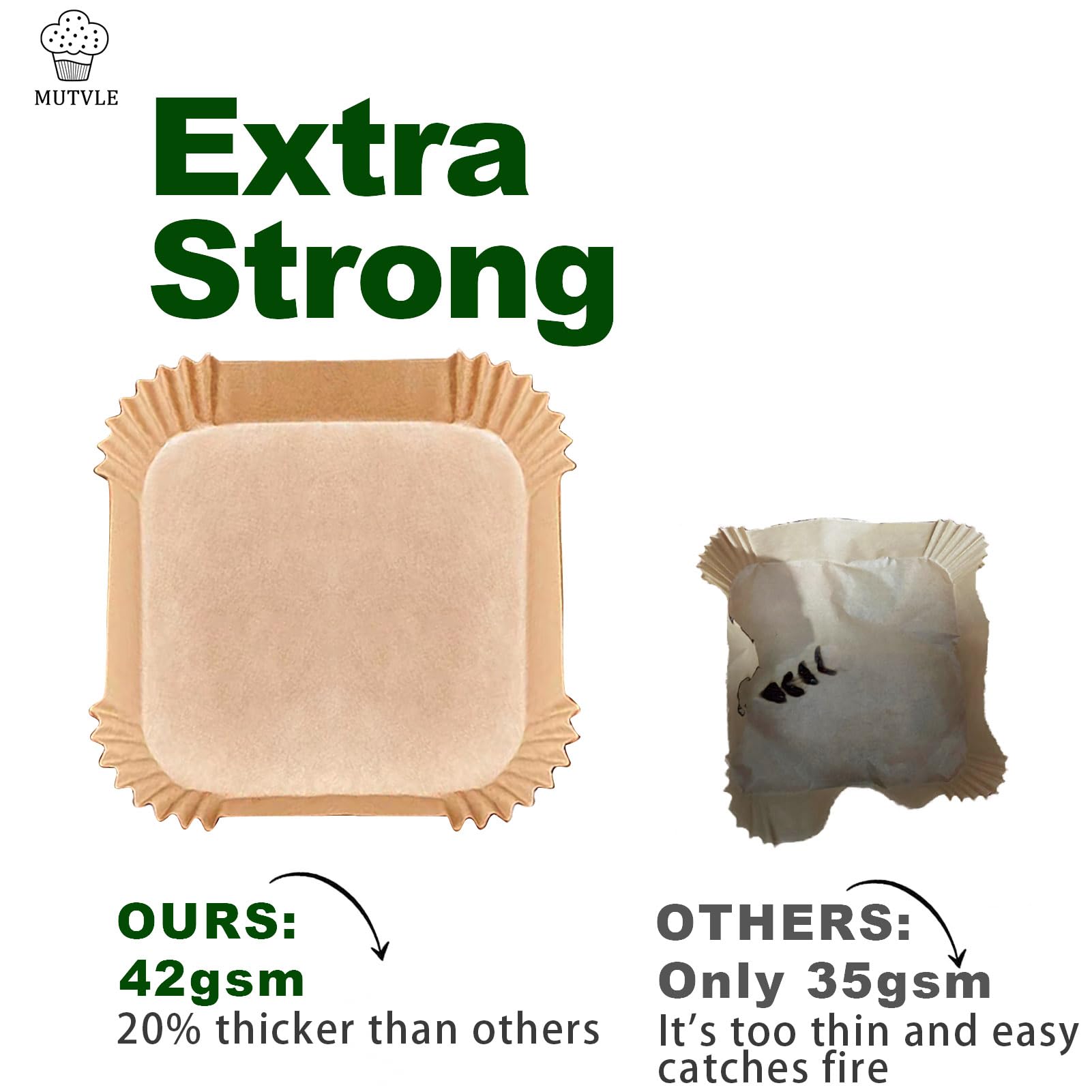 Healthy Materials: Chefman airfryer liners are made out of unbleached, natural wood pulp, with a plant based oil treatment, no fluorescent agent, BPA-free, PFAs-free. 12% thicker than ordinary parchment to be durable and sturdy, and won’t tear when lifting even after cooking. Heat resistant up to 450℉/230℃.