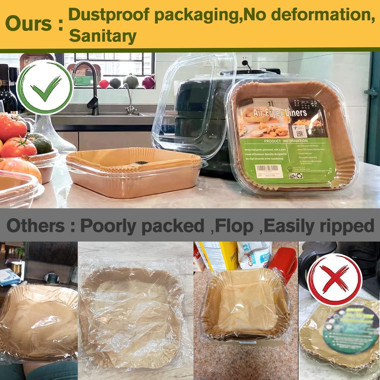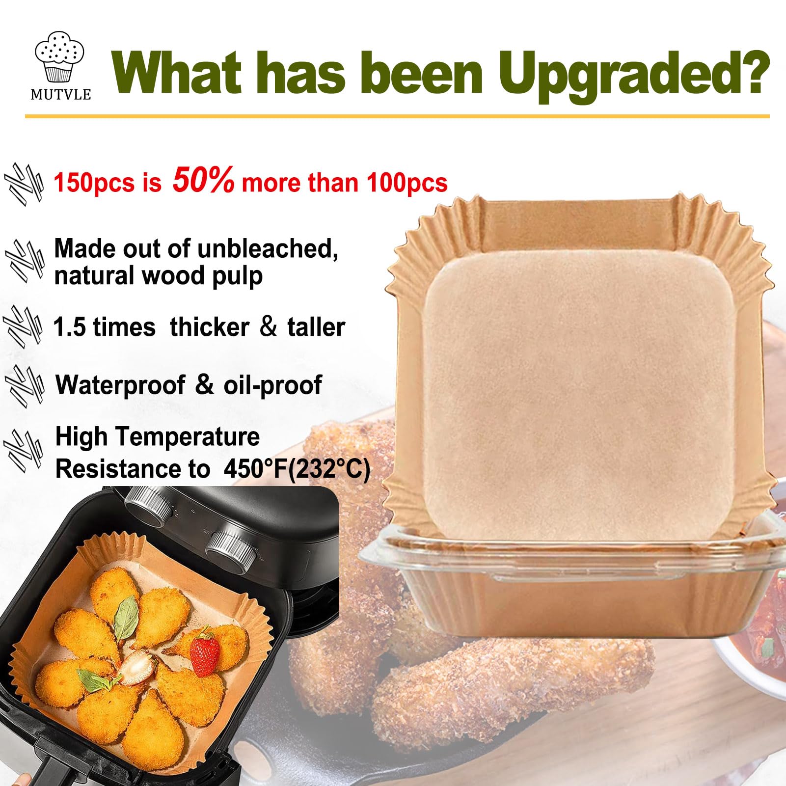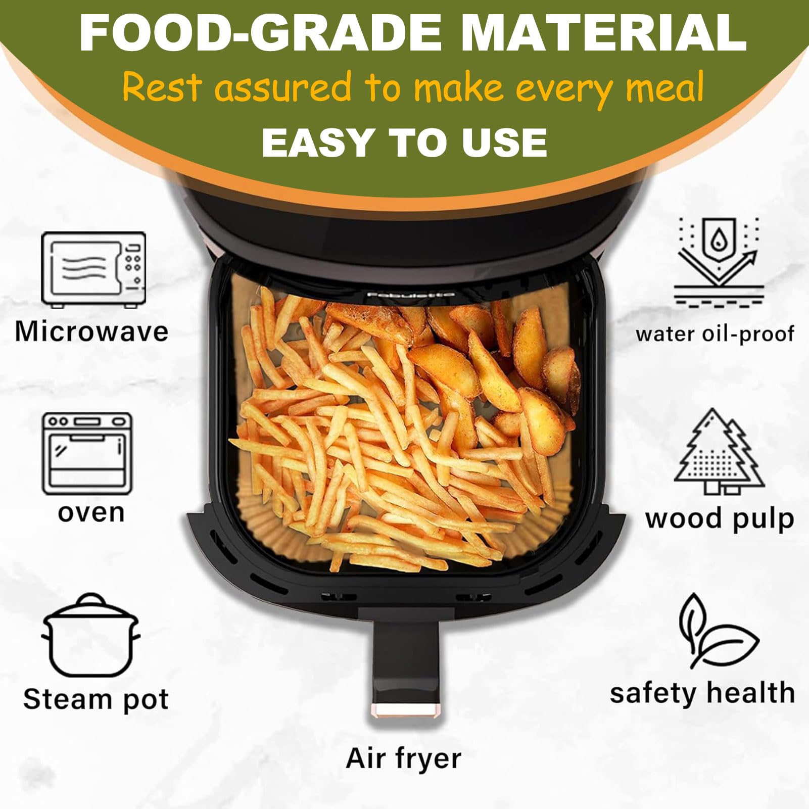 Easy to Use: The Non-Stick Parchment Paper Compatible with Beelicious air fryers are designed with a square bowl shape, which do not need to tear, fold, cut, nor bend, and you can directly put it in when you are ready to cook.