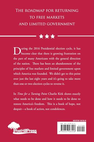 New York Times Bestseller Turning Point USA founder Charlie Kirk shares a vision for America’s future embracing first principles, free markets, and small government. Kirk provides a roadmap on how to return to a free America, with an emphasis on reaching our youth and engaging them in the process. During the 2016 Presidential election cycle, it has become clear that there is growing frustration on the part of many Americans with the general direction of the nation. There has been an abandonment of the principles of free markets and limited government upon which America was founded. We didn't get to this point over just the last eight years and it’s going to take more than one or two election cycles to reverse it. In Time for a Turning Point, Charlie Kirk shows exactly what needs to be done and how it needs to be done to restore America's freedom. This is a book of hope, not despair—book of action, not condolences.
