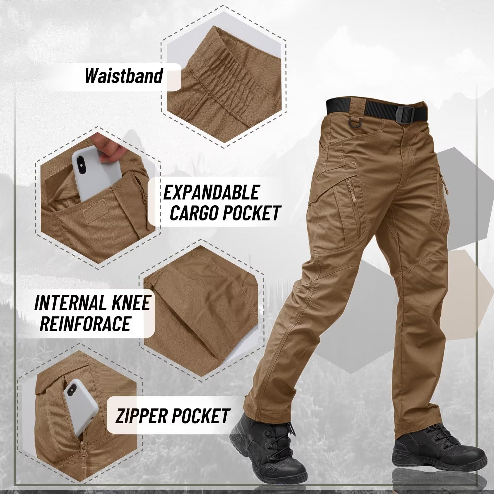 Multi-scenario: Tactical pants transition effortlessly from outdoor activities to work, suitable for tactical, military operations, work, hiking, climbing, hunting, cycling, heavy operations, military training, and more.