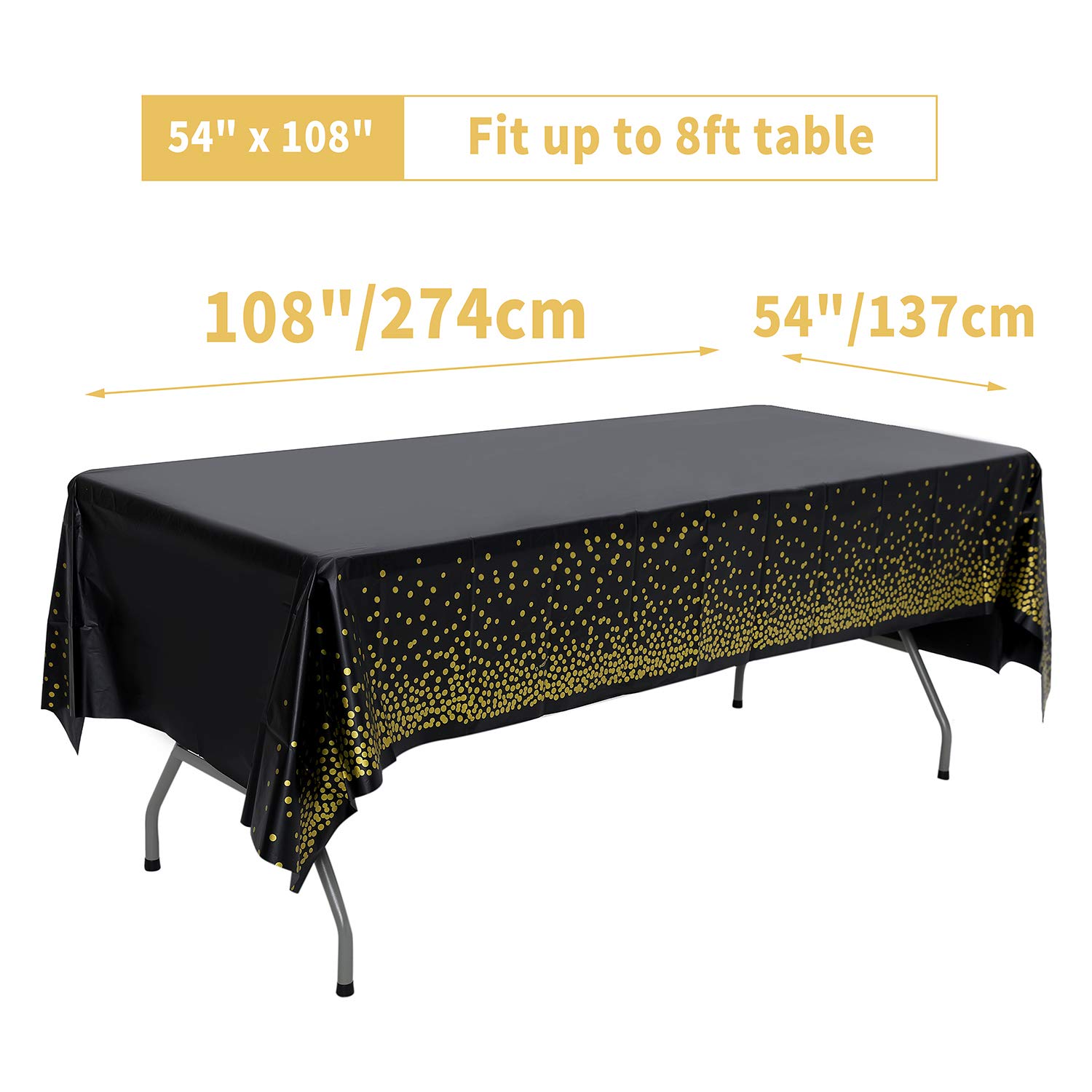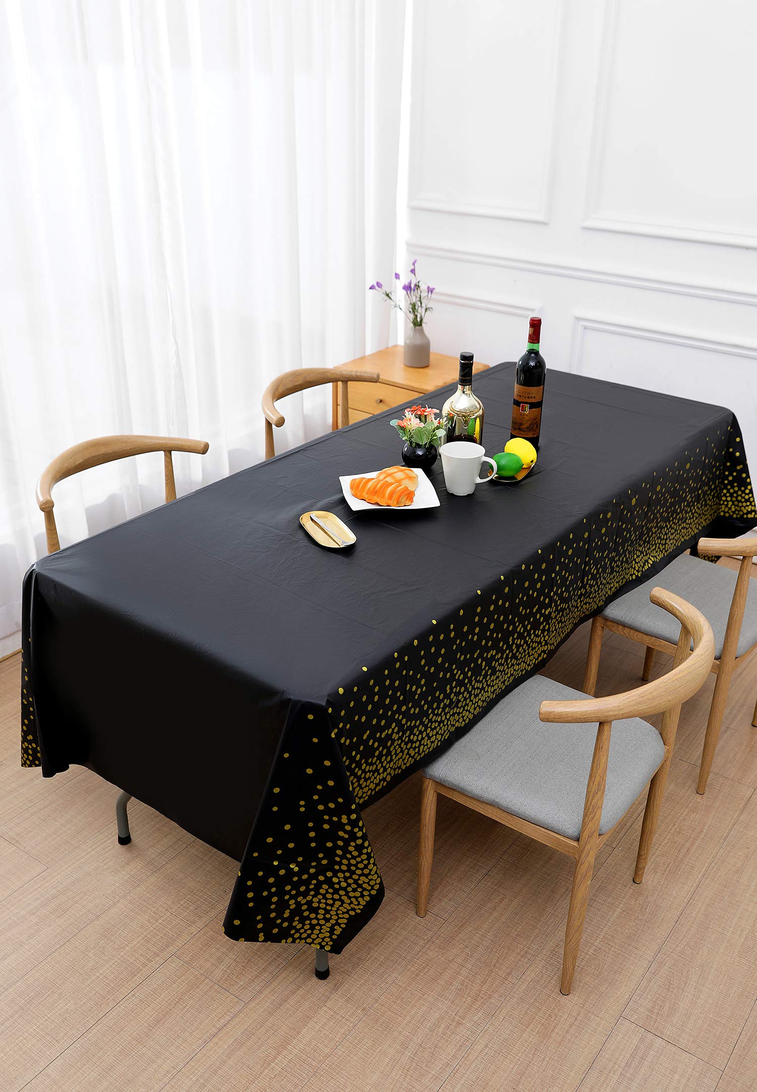 BLACK GOLD FOIL DOT DESIGN: This black and gold dot tablecloth is designed to black background and golden foil polka dot pattern. The tablecloth are all enhanced with attractive golden foil dot. Adding an elegant, modern touch to any party. Perfect choice for a black and golden themed party.