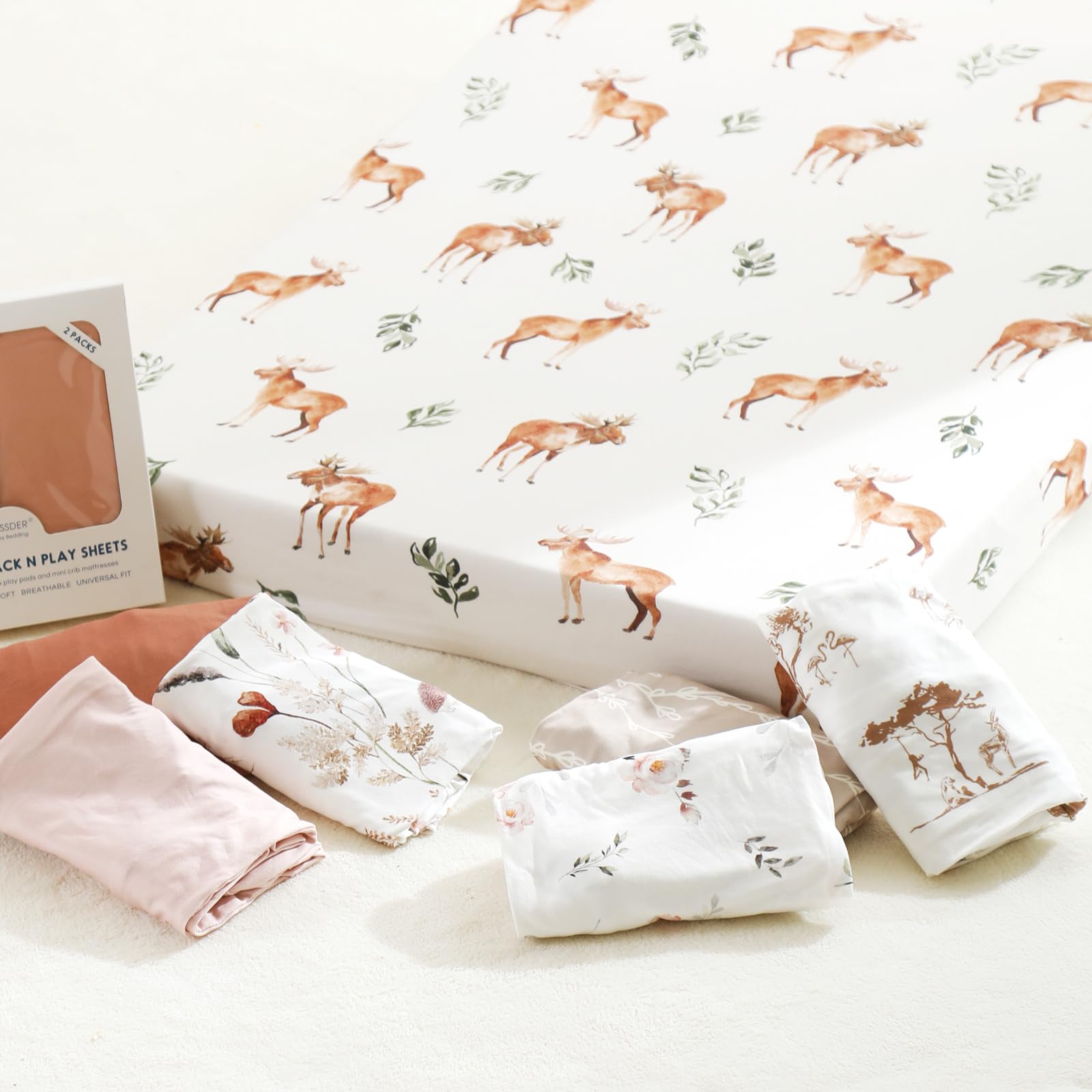 Universal Fit – Measuring 38" x 24" x 6". Our mini baby crib sheets come with an elastic band all around the sides to securely fit all standard pack n play mattresses. They are very easy to put in place even when you need to change pack n play mattresses sheets in a hurry. Perfect as Christmas bed sheets for baby shower gift or for your own nursery.