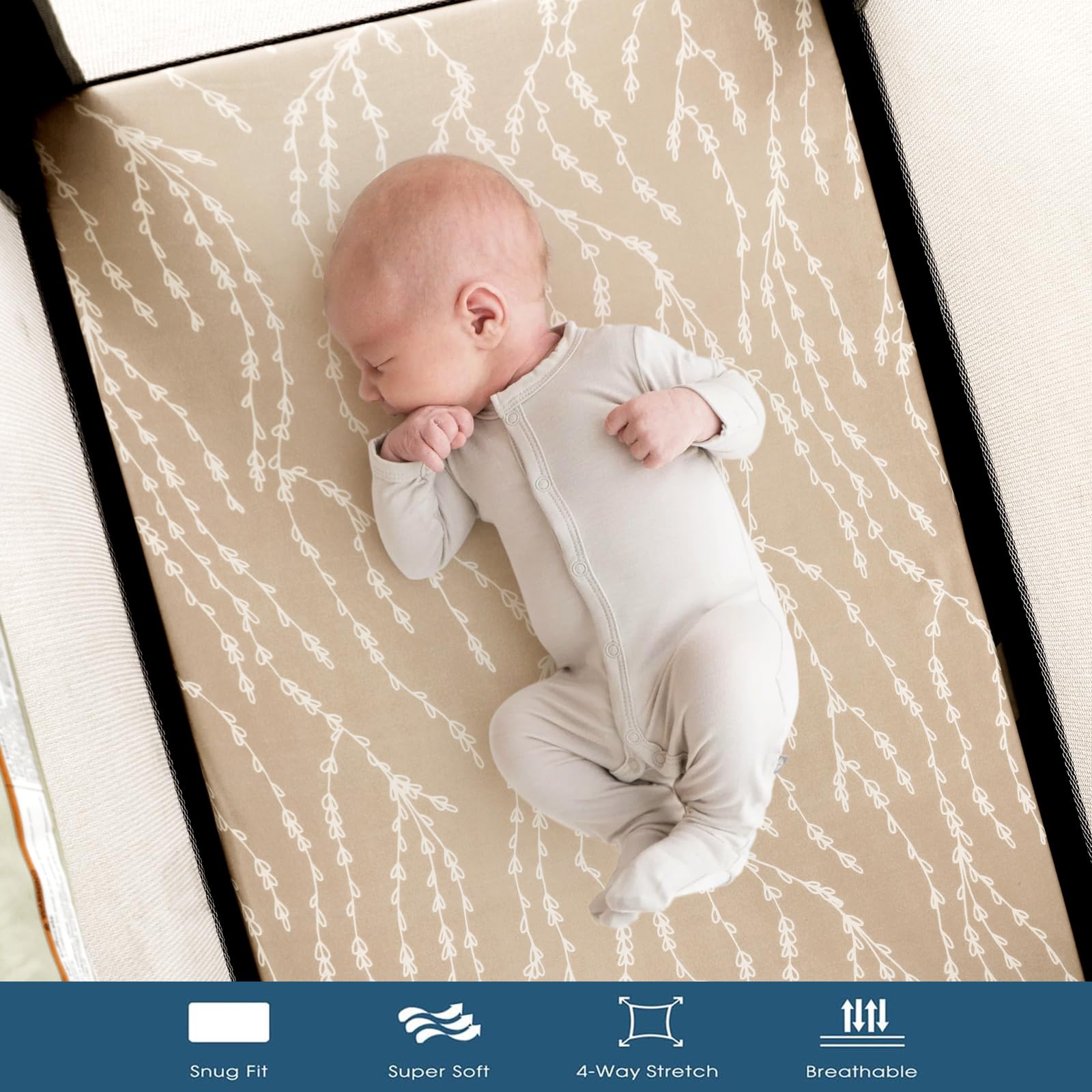 Ultra Soft & 4-way Stretch: Made of extra soft stretchy jersey knit fabric. GRSSDER mini crib sheets offer a breathable, sweat-absorbent tee shirt like feel for exceptional comfort, providing your little ones a safe and to stay in place throughout the day.
