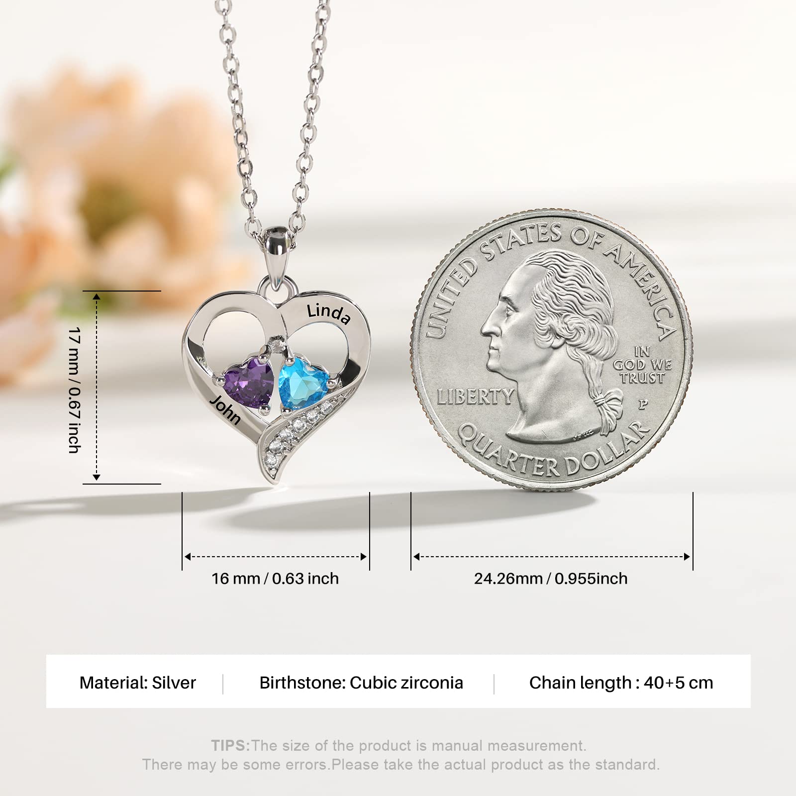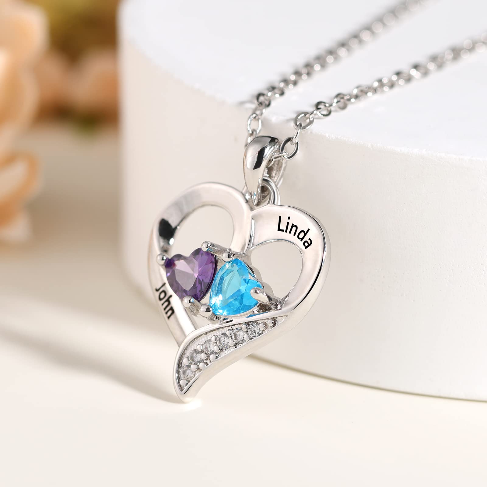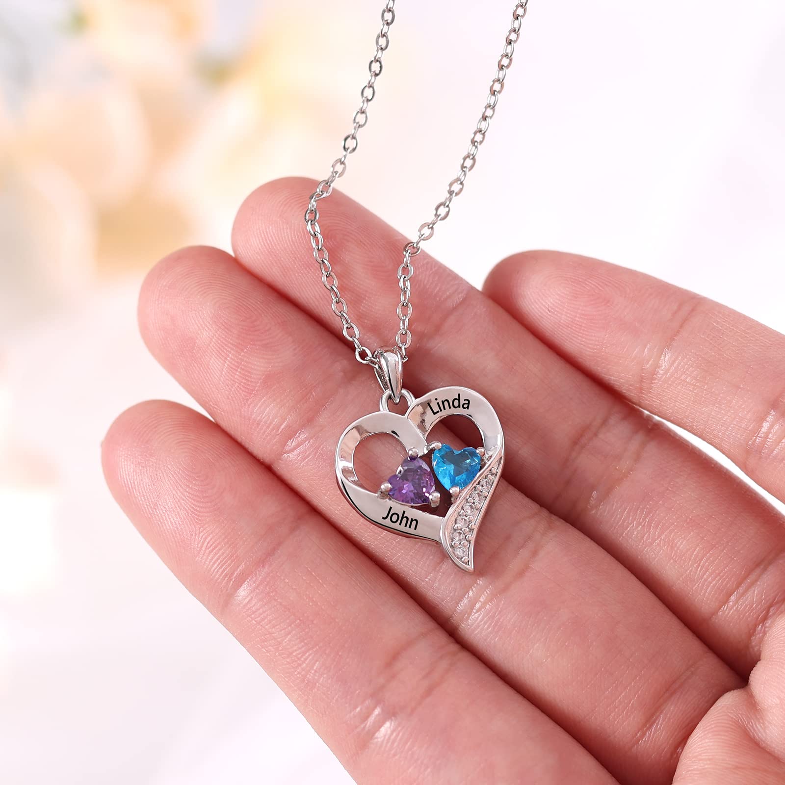 Customized Birthstone Charm:Design your own necklace with a dainty heart charm and genuine birthstone of your choice, personalizing each piece with the names of your loved ones, for a truly unique and meaningful touch.