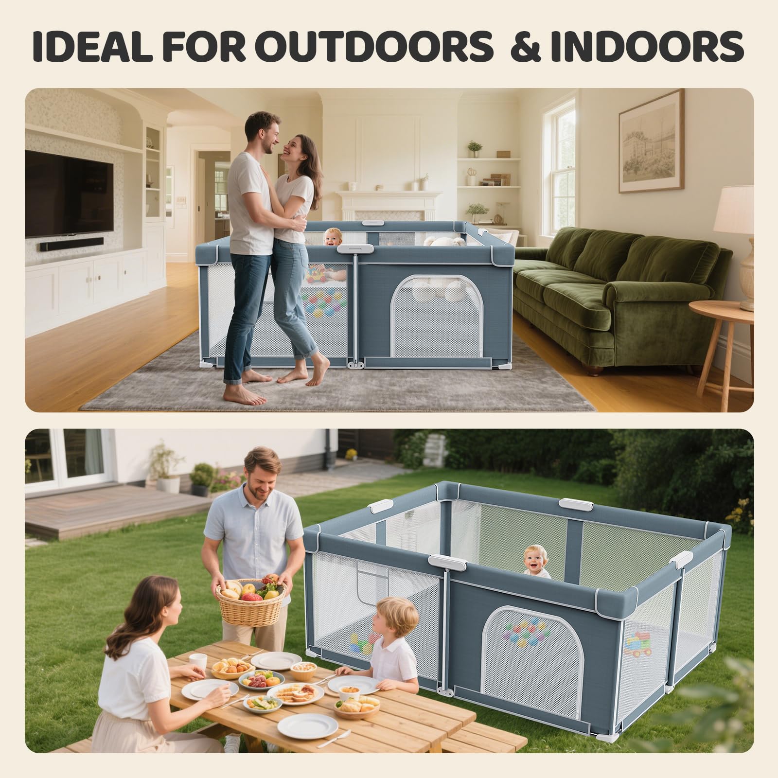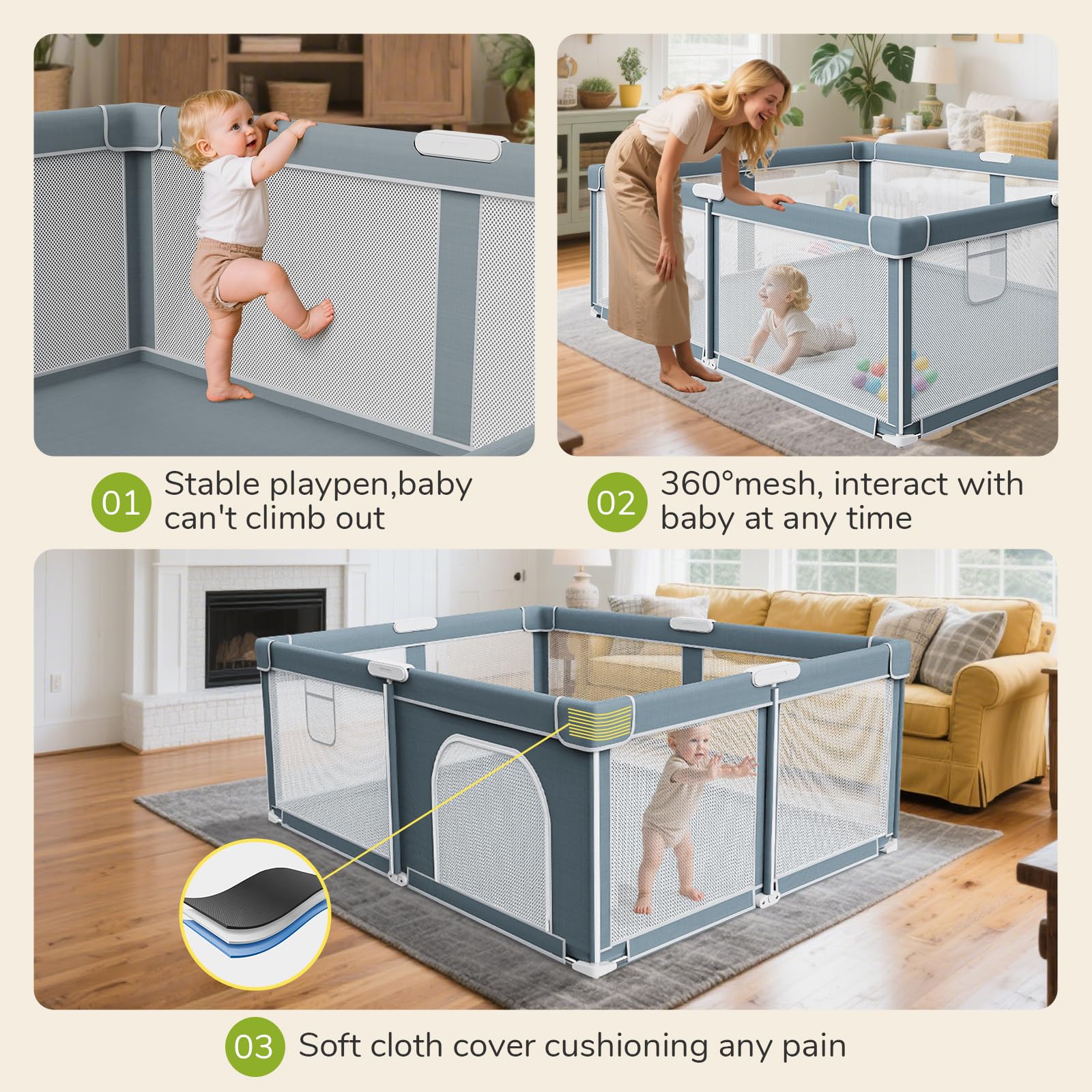 【Spacious Play Area】 The portable baby playpen unfolds to 71x59 inches, the spacious activity space perfectly accommodates baby and parents to play, rest and other needs inside the playpen, there is plenty of room for toys, balls, blankets or anything you can think of, providing safety for baby's growth and exploration, allowing children to enjoy the fun of play.