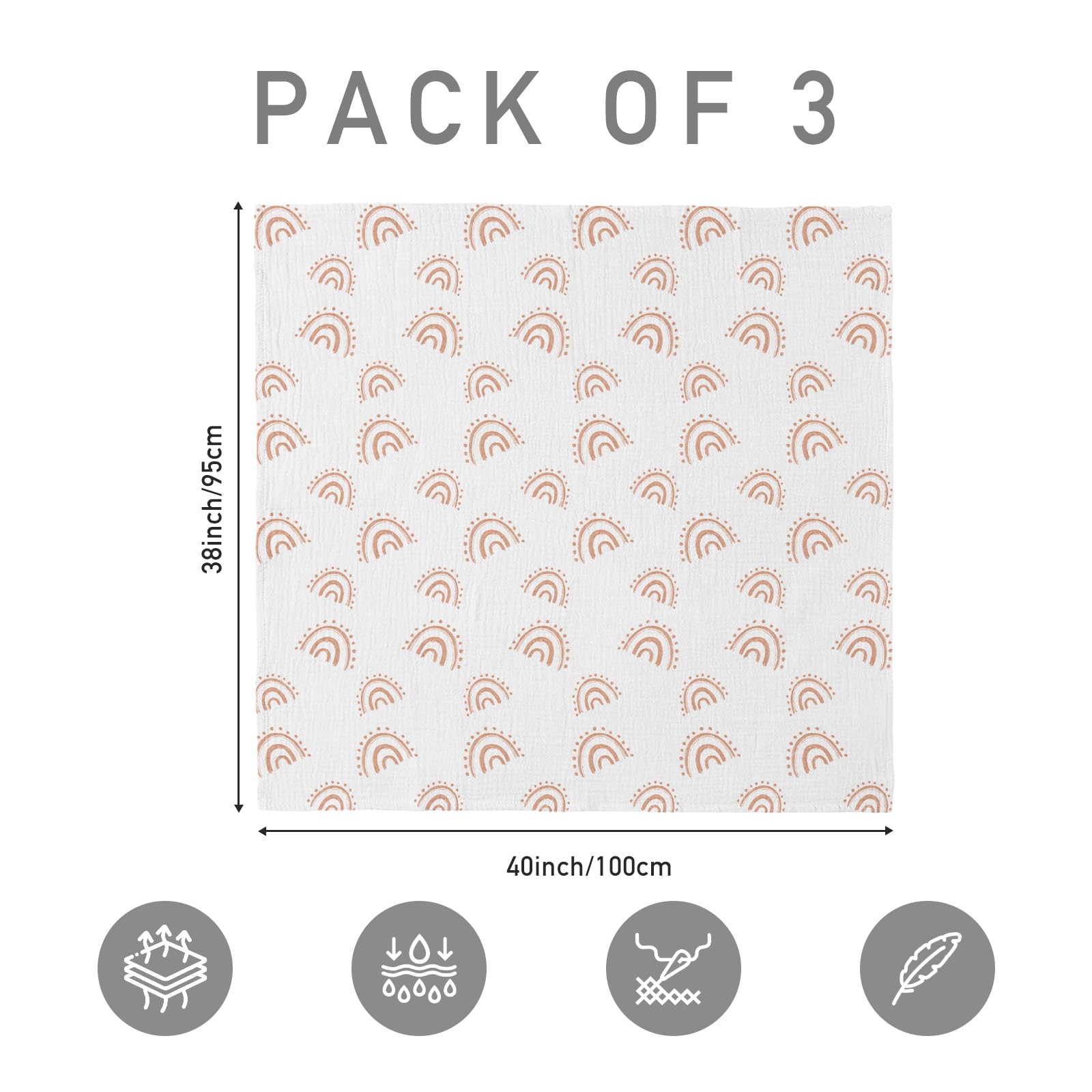 THIN, BREATHABLE & ABSORBENT: Each individual muslin swaddle blanket (38X40 inches) is thin enough to provide ample breathability, which means they can keep your little one warm and cozy in cooler weather, let their skin breathe in warmer weather. It can helps regulate your baby's body temperature and prevents overheating.