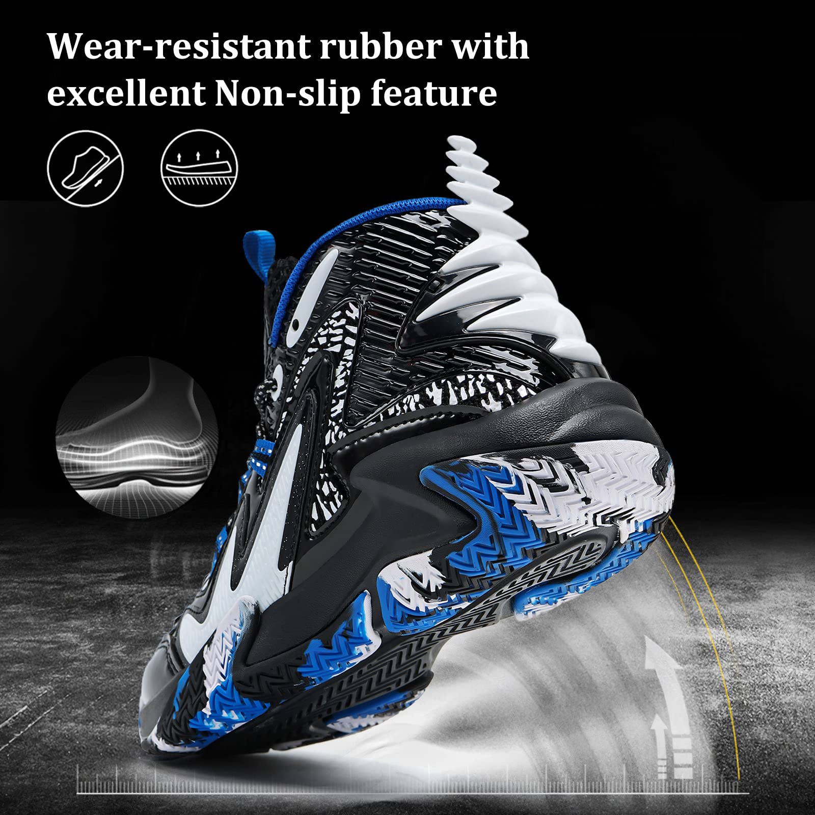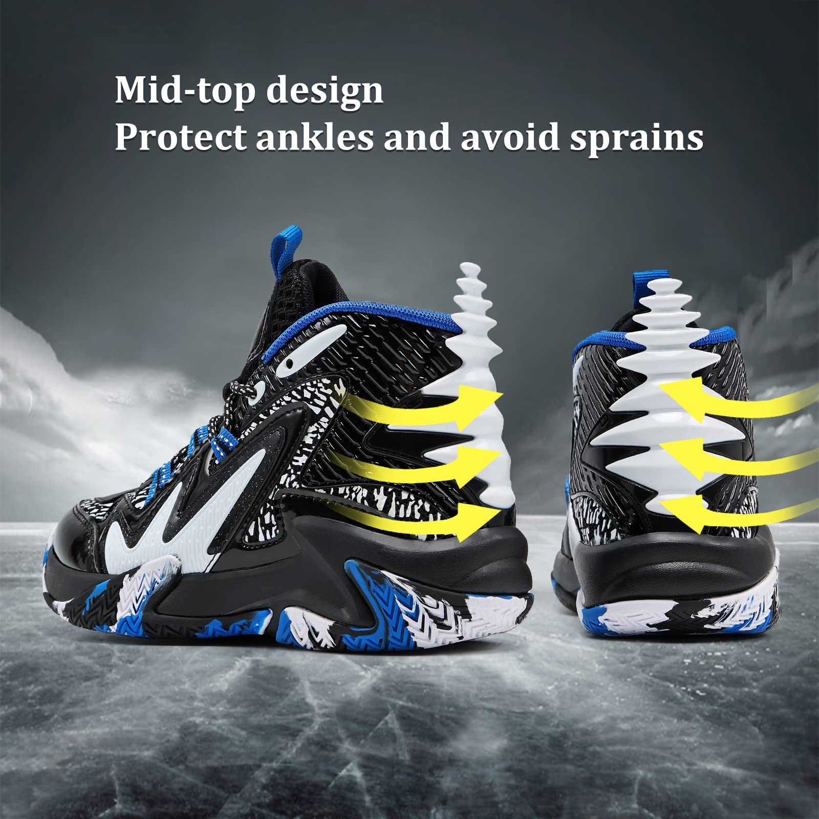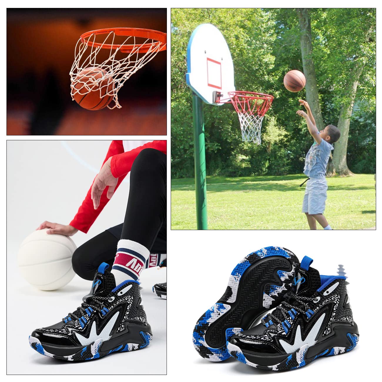 Description Boys Basketball Shoes Kids Basketball Sneakers Girls Non-slip Outdoor Training Shoes Mid Top Running Shoes Comfortable Boys Sports Shoes Durable Indoor Court Shoes Little Kid/Big Kid The design of the boys basketball shoes is to protect children's safety as the primary purpose. Therefore, we use non-slip and wear-resistant TPR outsole and air cushion midsole,they will play a role in shock absorption and cushioning during exercise, in order to provide sufficient safety for children. Our kids basketball shoes feature a mesh upper and skin-friendly lining that are breathable and stretchy. The soft and high-quality fabrics make children's feet more comfortable.High-top basketball shoes can protect children from sprains during intense sports. SIZE CHART 11 little kid=EU 28= 18.7CM(inner length) 11.5 little kid=EU 29= 19.3CM(inner length) 12.5 little kid=EU 30= 20CM(inner length) 13 little kid=EU 31= 20.7CM(inner length) 1 little kid=EU 32= 21.3CM(inner length) 1.5 little kid=EU 33= 22CM(inner length) 2.5 little kid=EU 34= 22.7CM(inner length) 3 big kid=EU 35= 23.3CM(inner length) 4 big kid=EU 36= 24CM(inner length) 5 big kid=EU 37= 24.7CM(inner length) 6 big kid=EU 38= 25.3CM(inner length) 6.5 big kid=EU 39= 26CM(inner length) 7 big kid=EU 40= 26.7CM(inner length) 8 big kid=EU 41= 27.3CM(inner length)